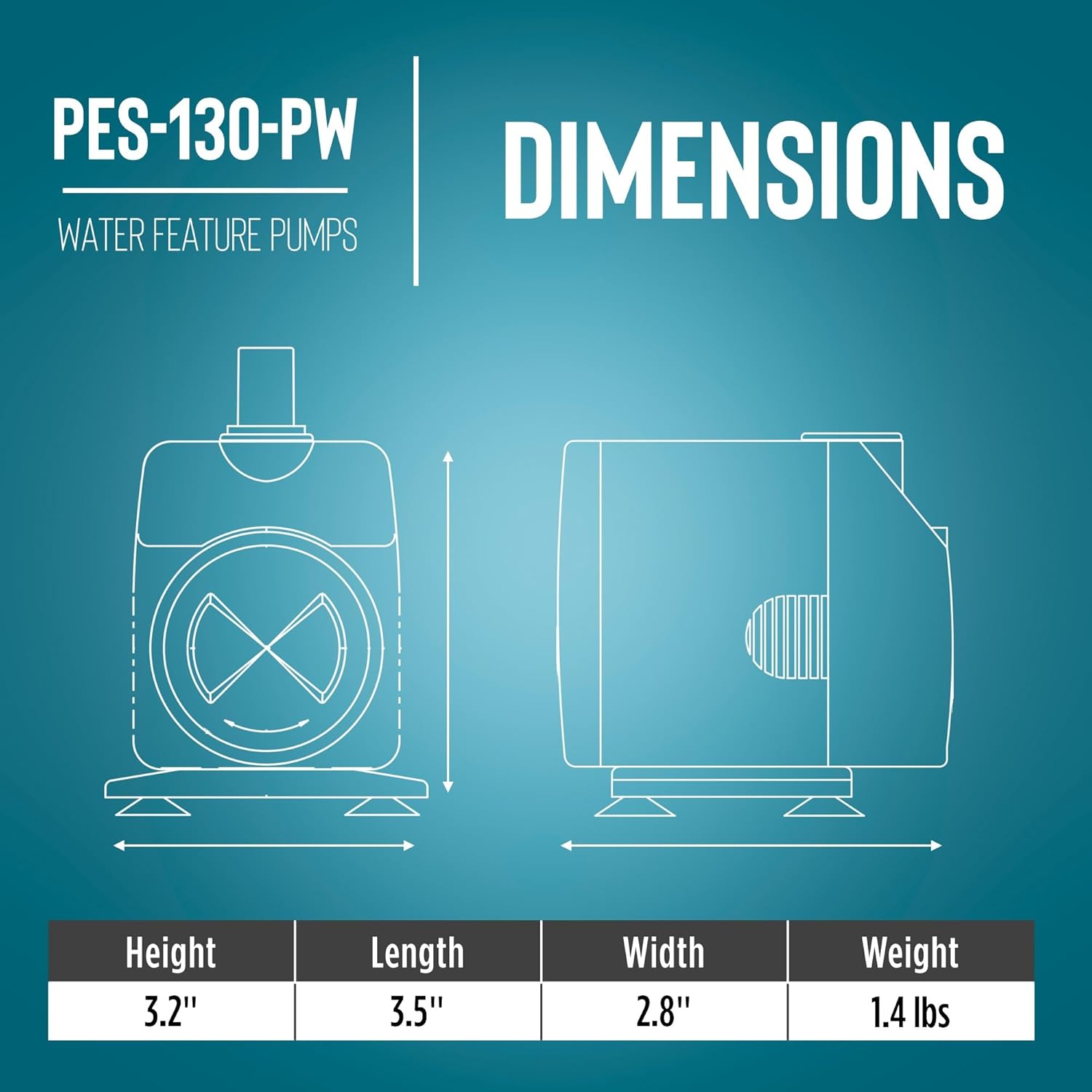 • APPLICATIONS: designed for water fountains and small ponds up to 130 gallons, hydroponics and other water transfer applications
