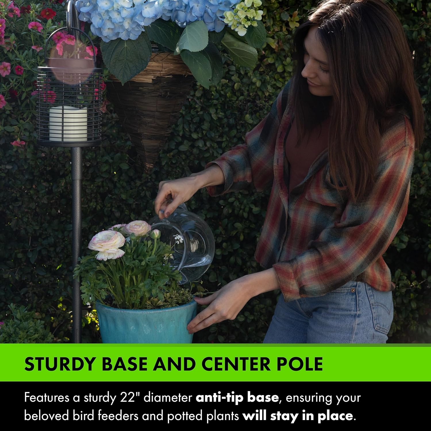 • Adjustable & Safe Stand: Sturdy base and center pole ensure that your plants and bird feeders stay in place; plant hangers and rings can be adjusted