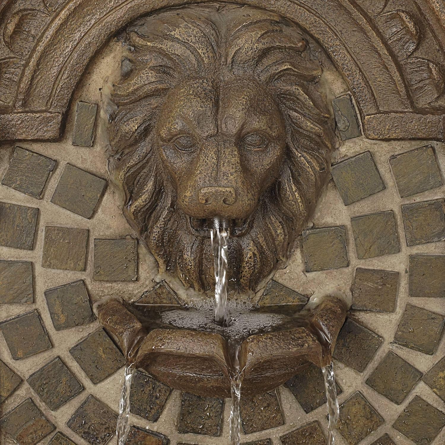 • 【Specifications】 51" high x 23 1/2" wide x 15 1/2" deep. Bottom of base is 16" wide x 13" deep. Weighs 48 lbs. Lions head garden fountain. Designed to be set against a house or garden wall. By the John Timberland brand.