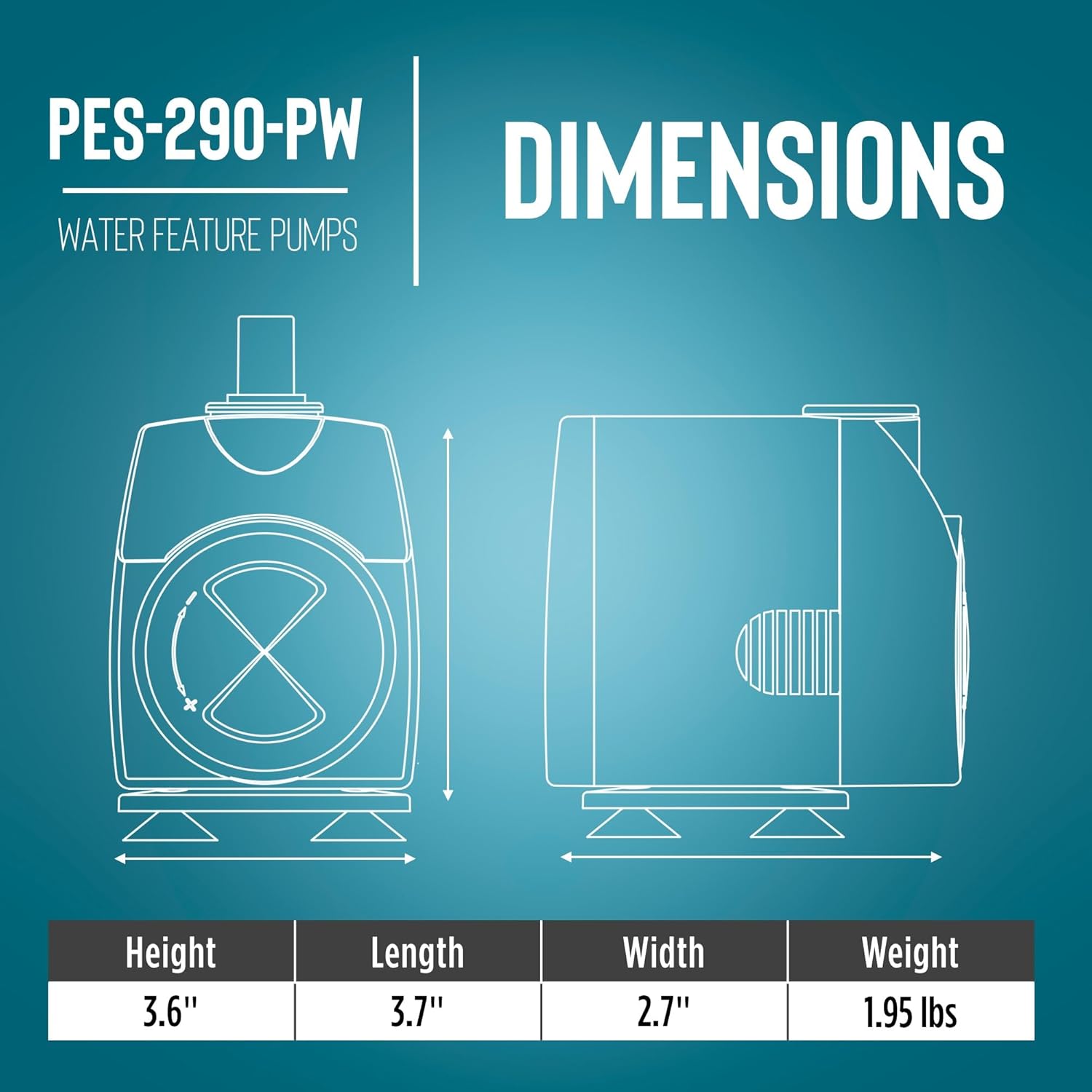 • APPLICATIONS: designed for water fountains and small ponds up to 300 gallons, hydroponics and other water transfer applications