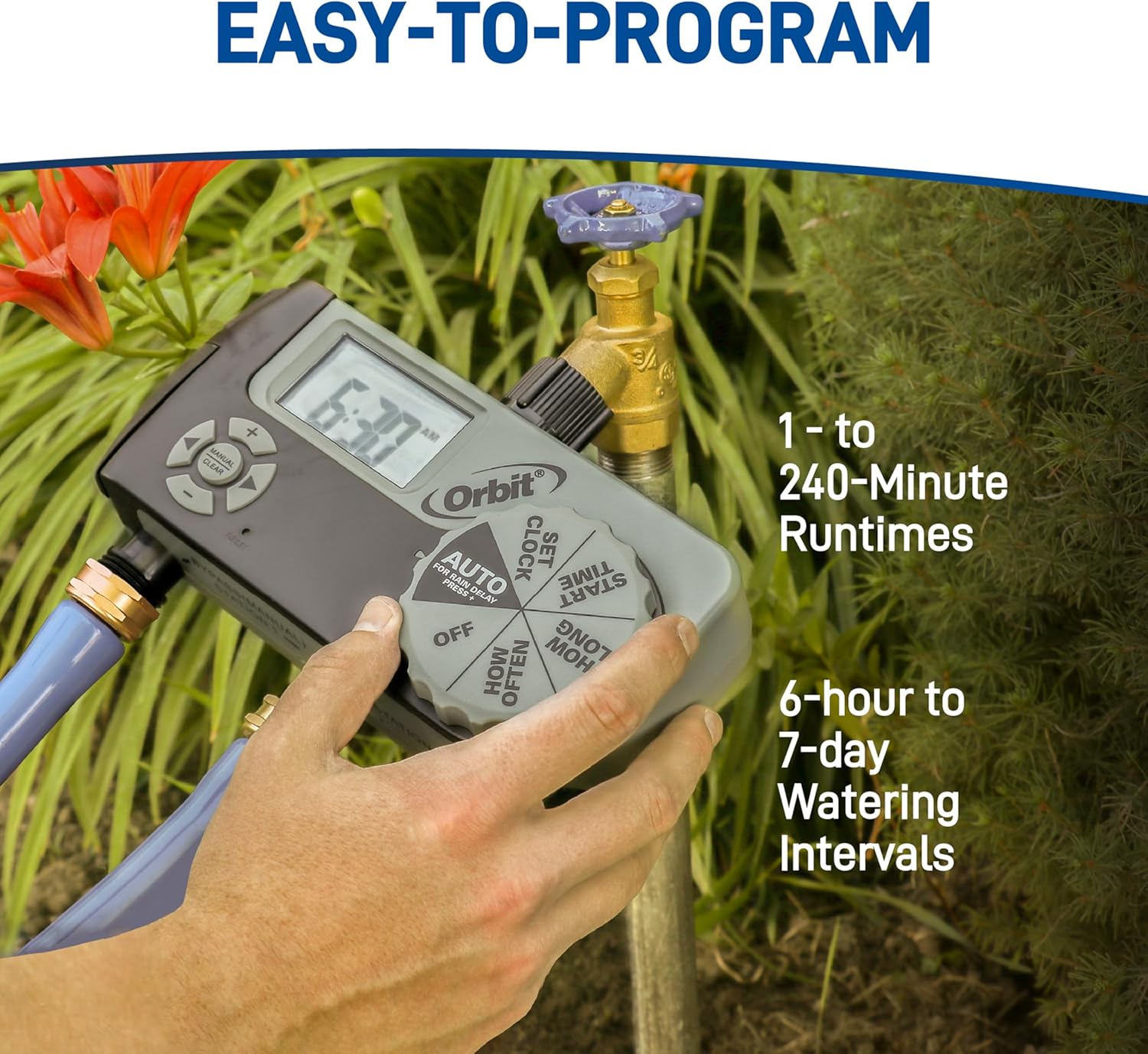 • CONSERVE WATER: Automate your watering routine! This timer shuts the water off for you, giving your yard just the right amount of water.