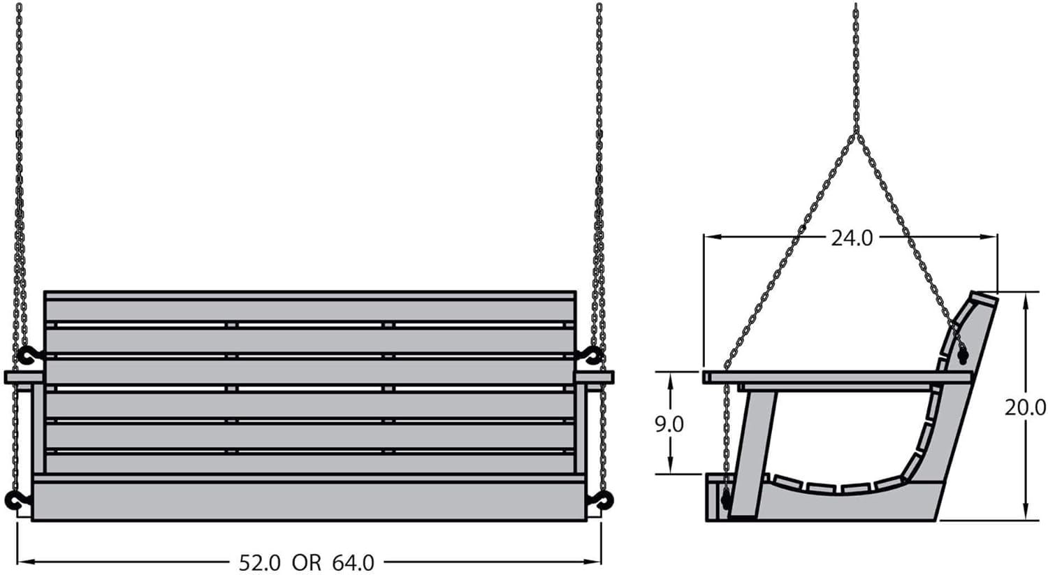 • RELAXING BOLDLY: Our Weatherly 5 foot porch swing offers a contemporary feel for your patio with a modern design that feature horizontal board patterns. Each swing includes (2) 7 foot chains and (2) 2 foot chains for easy of installation to a sturdy structure. Assembled dimensions are 64"W x 20"H x 24"D (44lbs)