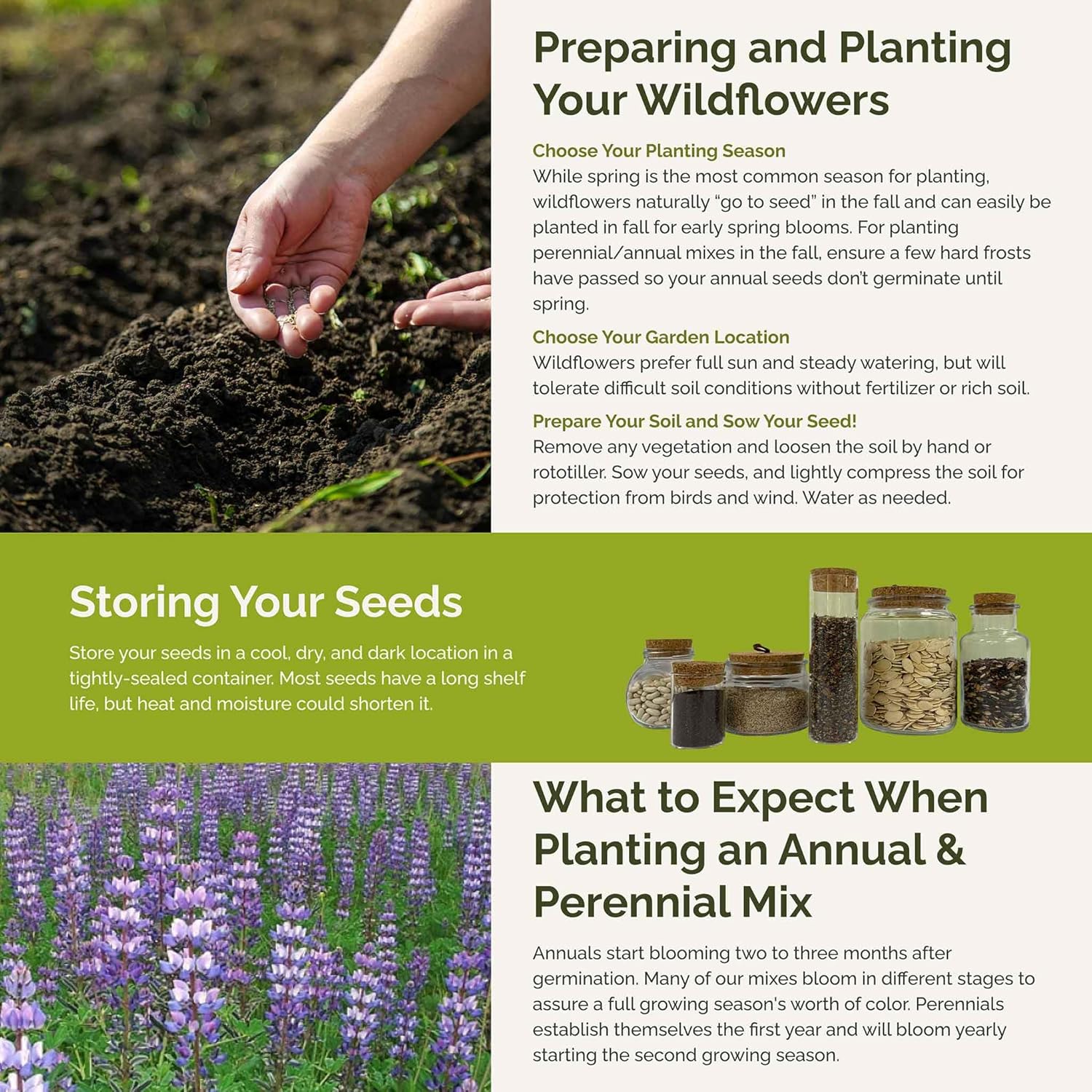 • Attracts Pollinators - With 10,000-20,000 square feet of ground cover, this non-GMO seed mix is sure to bring the bugs and birds to your yard! Easily attract bees, butterflies, and hummingbirds to pollinate blooms.