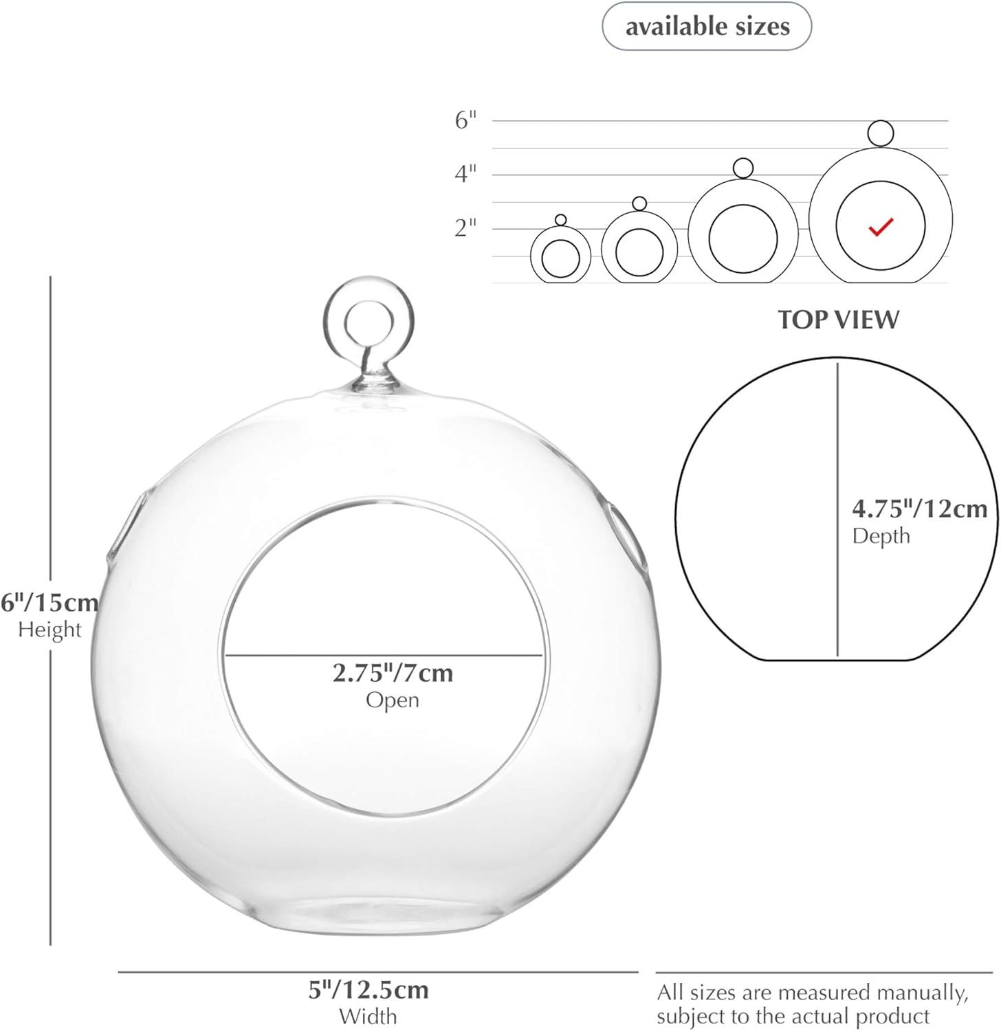 WGV Hanging Terrarium Globe, Width 5", Height 6", DIY Air Succulent Planter, Clear Glass Vase Orb with Flat Bottom, Candle Holder for Windowsill Outdoor Garden Decor, 1 Piece