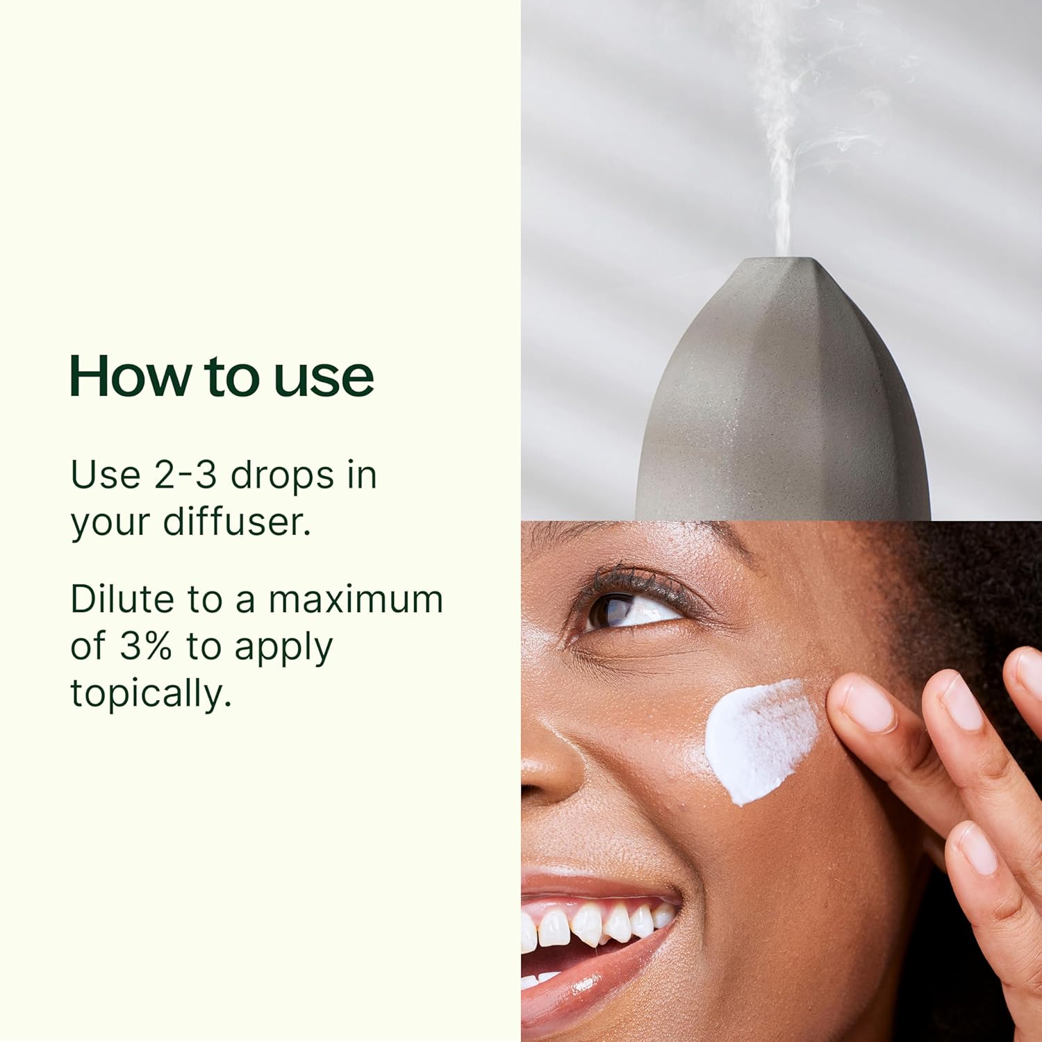 • Ideal for Muscle Pain: This frankincense oil has a green, woody, earthy scent. Add a few drops to a diffuser and inhale or mix with a carrier oil and apply to your palms and wrists.