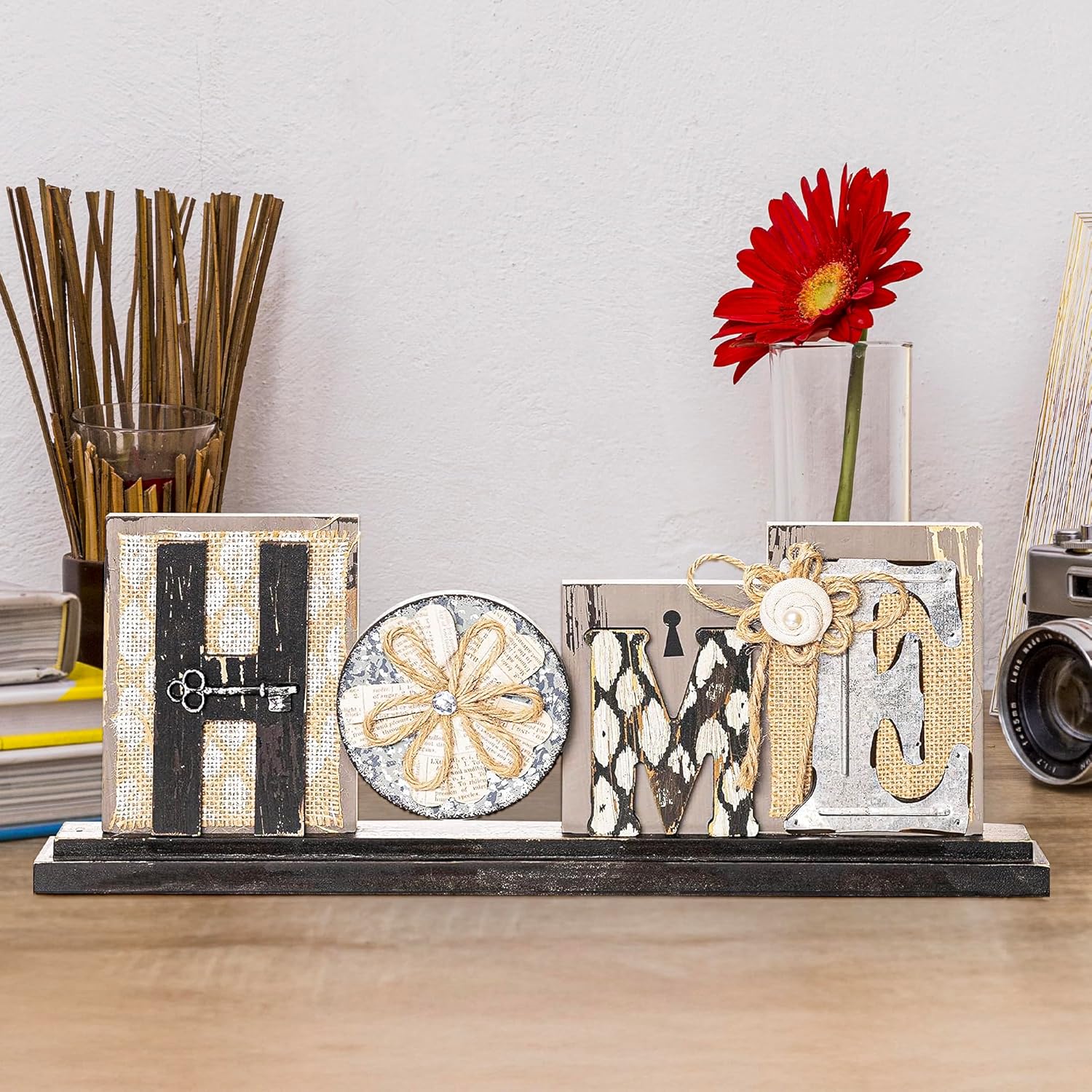 • HOME SIGN: Appealing accents embellish this large wooden sign while adding a unique homemade style. Our rustic art piece spells out the word HOME in uppercase letters with striking accessories, metal and felt materials and a cute decorative flower.
