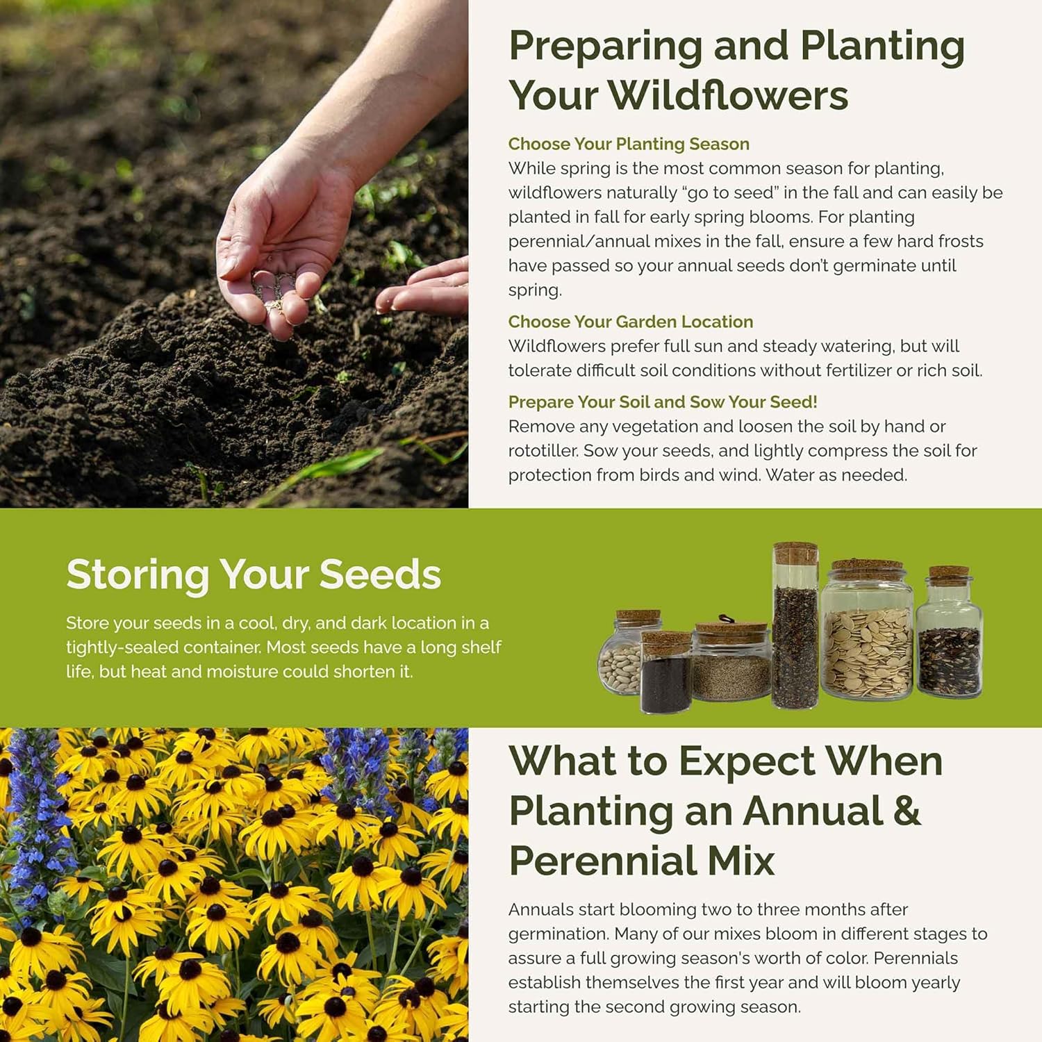 • Perfect for Zones 3-10 - This bulk outdoor mix is a mix of annual and perennial varieties and suitable for all USDA hardiness zones, 3-10. These animal resistant, low-maintenance varieties prefer full sun and will produce mixed color blooms all summer through fall.