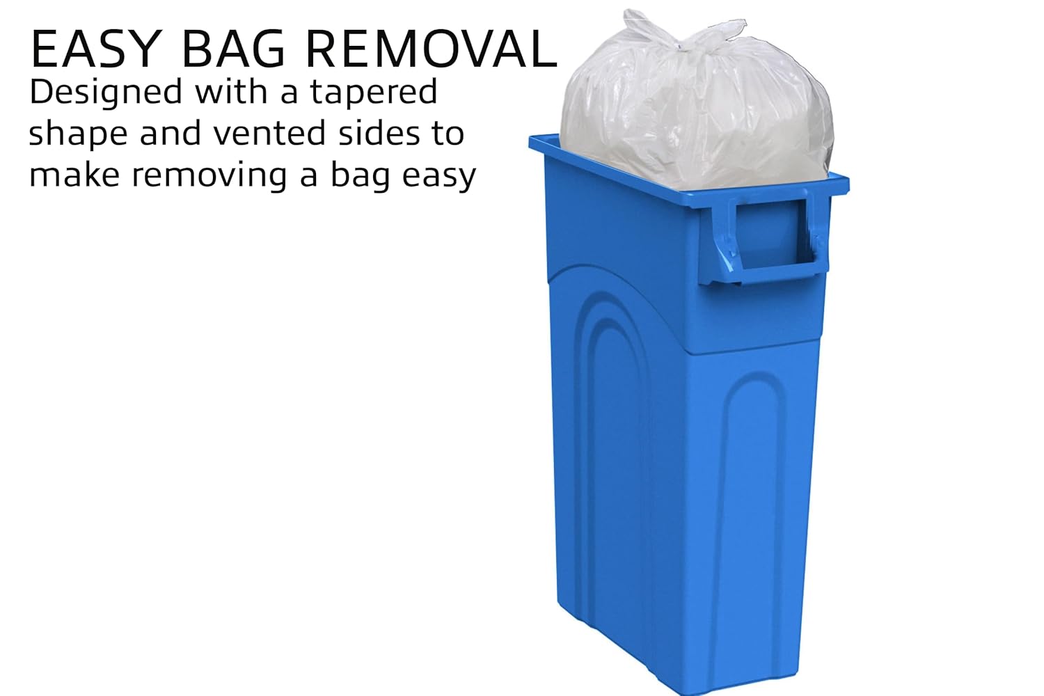 • Easy Bag Removal - This indoor/outdoor recycle bin was designed with a tapered shape and vented sides to make it simple to remove a trash bag. Eliminate the struggle to remove a full bag of waste. The recommended bag size for ideal use is 33 gallons.