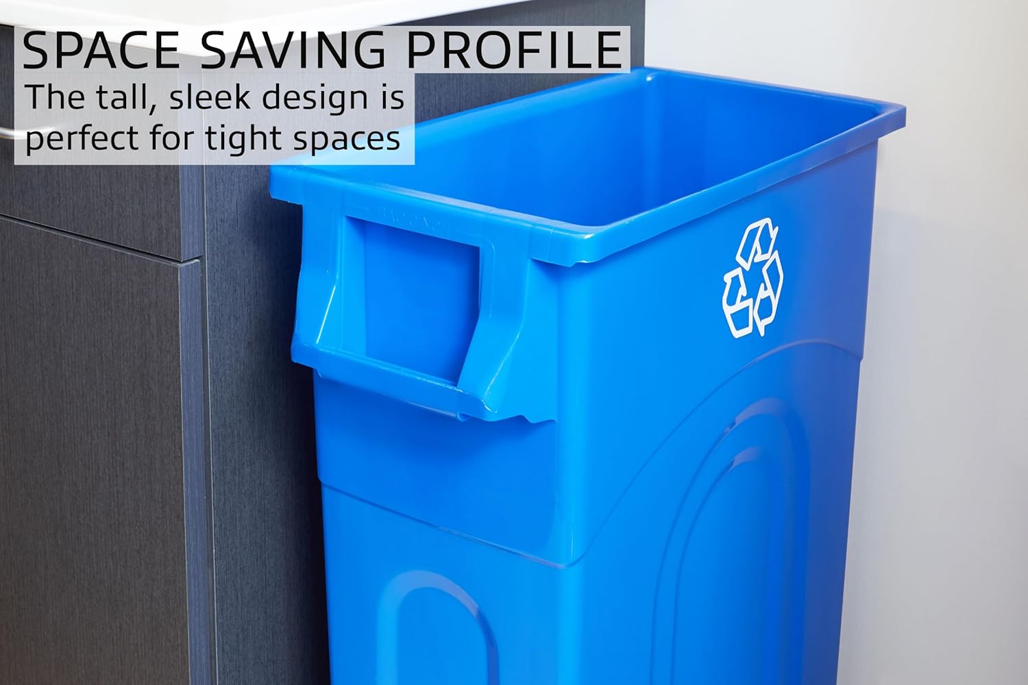 United Solutions Highboy Recycling Bin, 23 Gallon, Space Saving Slim Profile and Easy Bag Removal, Indoor or Outdoor Use, Integrated Handles for Easy Carrying, 4-Pack, Recycle Blue
