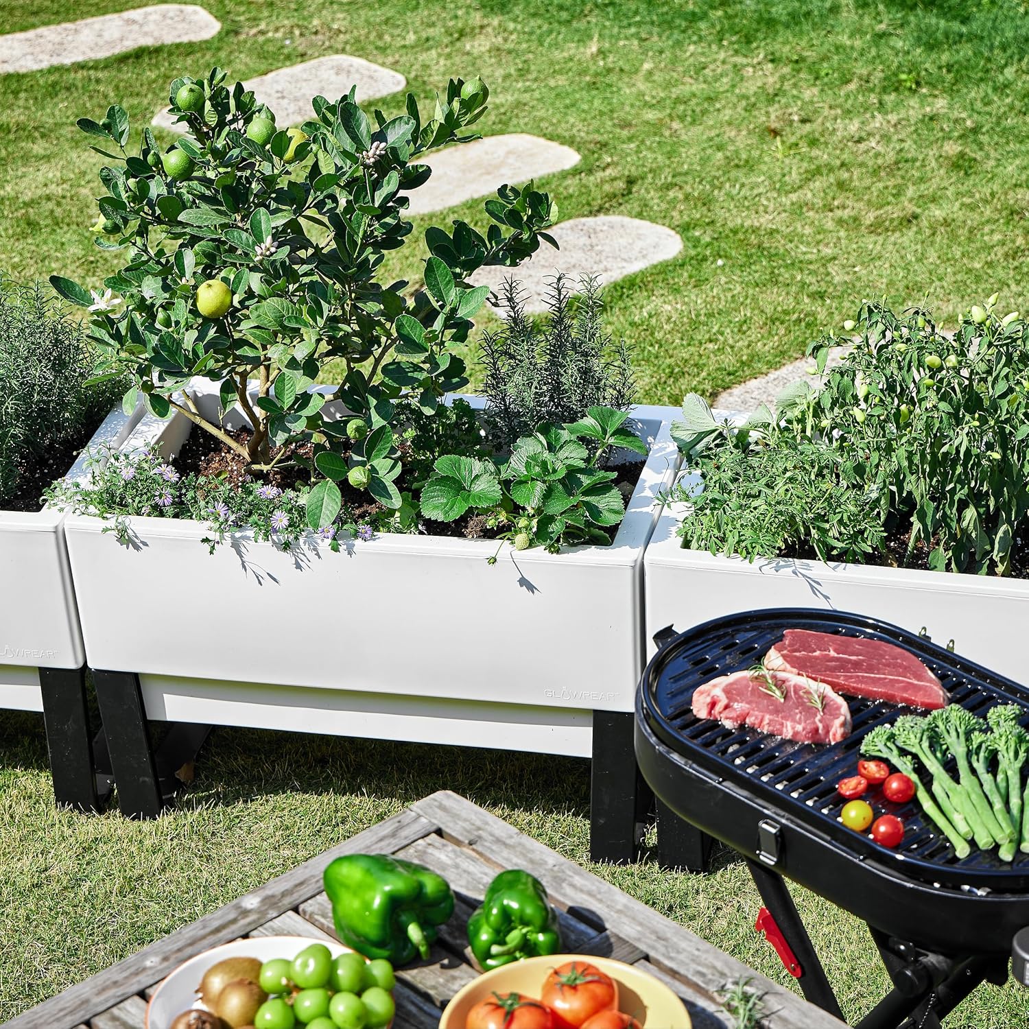 • 【Easily grow the plant&vegetables and herbs you love! 】- No bending required with ideal growing conditions: Pick, prune and water your garden easily due to the raised design with generous 11” soil depth and 16 gal volume to optimize growing; flowers i.e. violas, pansies and daffodils; fruit i.e. tomatoes; vegetables i.e. beans, lettuce and radish; and herbs i.e. basil, thyme and coriander.
