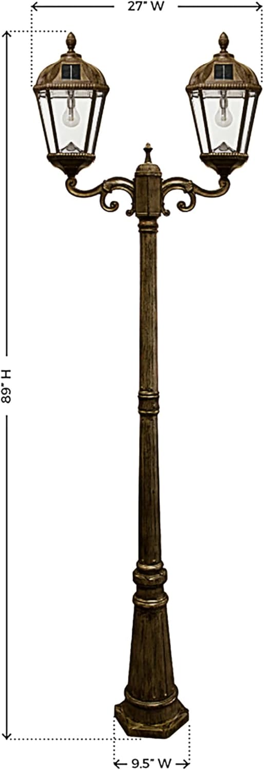 Gama Sonic Outdoor Solar Lamp Post Light Kit, Royal Bulb 300 Lumens, Double Head Weathered Bronze Cast Aluminum Post Lamp and Light Pole, Warm White Light 2700K, 98B302 (Upgraded Battery and Panel)
