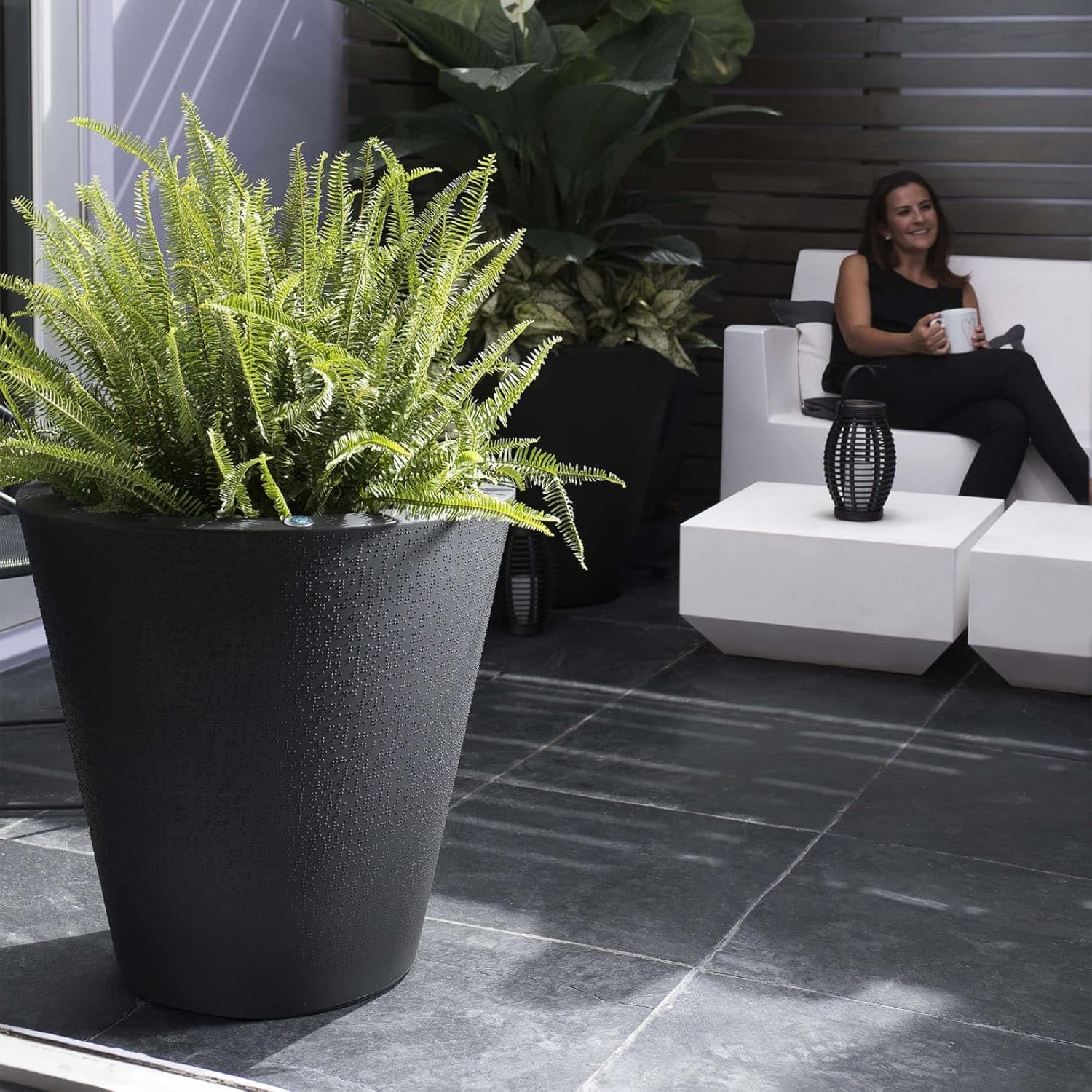 • SELF-WATERING: The TruDrop One self-watering container system can go weeks without watering. The easy-to-read water-level indicator reduces watering frequency, and an ingeniously designed reservoir helps keep fertilizer contained.