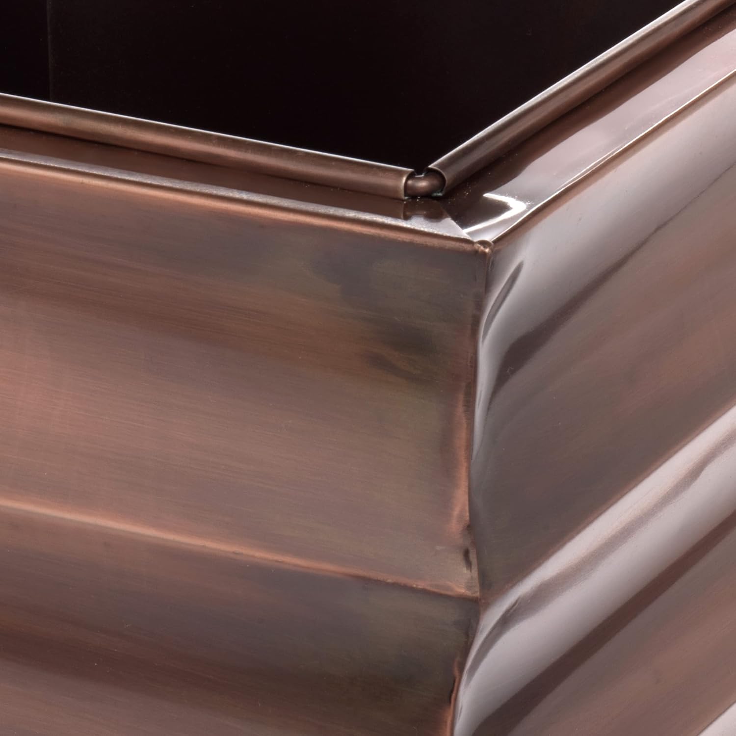 • Ribbed Planter Dimensions: Planter stands 29 inches tall and 11.25 inches square at the mouth of the planter, with the base measuring 8.25 inches square. Let this dynamically sized copper pot become the perfect addition to a porch or patio