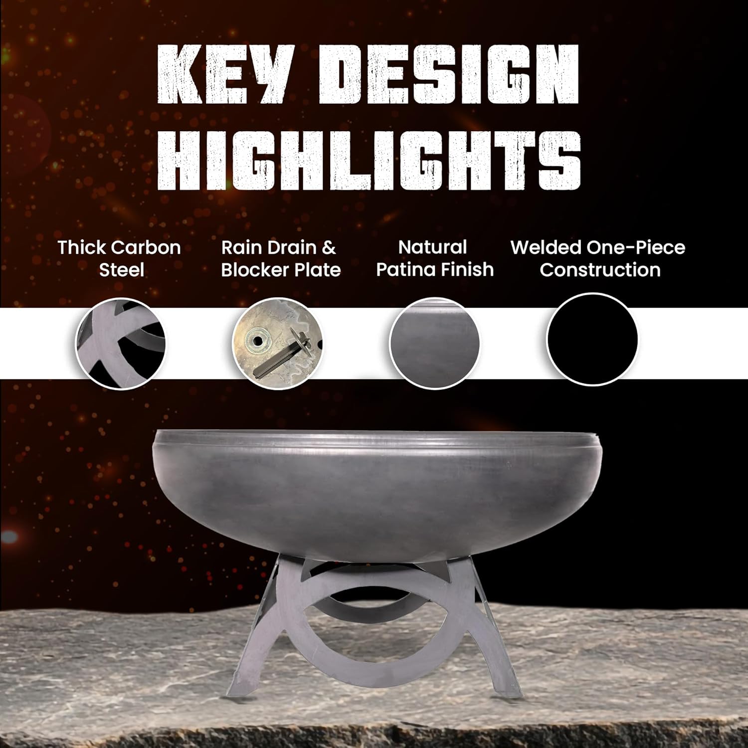• WOOD BURNING FIRE PIT: The Liberty Fire Pit is designed to serve as a heavy duty wood burning fire pit. The edgeless fire bowl design allows for efficient wood loading and simplifies maintenance when cleaning out.