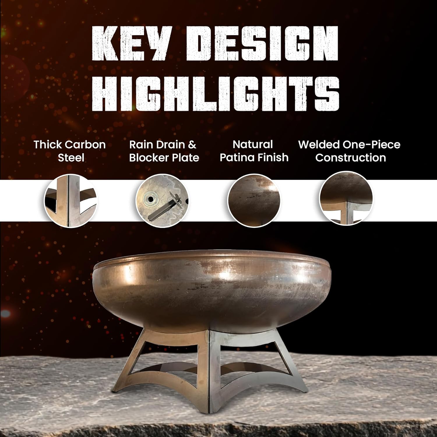 • WOOD BURNING FIRE PIT: The Liberty Fire Pit is designed to serve as a heavy duty wood burning fire pit. The edgeless fire bowl design allows for efficient wood loading and simplifies maintenance when cleaning out.