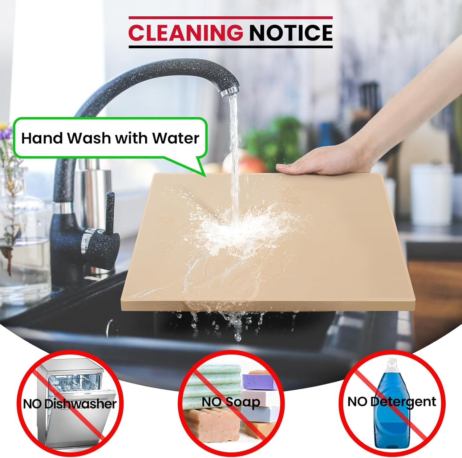 • Cleaning and Care: After the pizza stone has cooled, use a scraper to remove any food residue. Hand wash with warm water, using a brush if necessary. Do not use detergent. Frequently used pizza pans may develop discolored areas over time. This is normal and does not require cleaning
