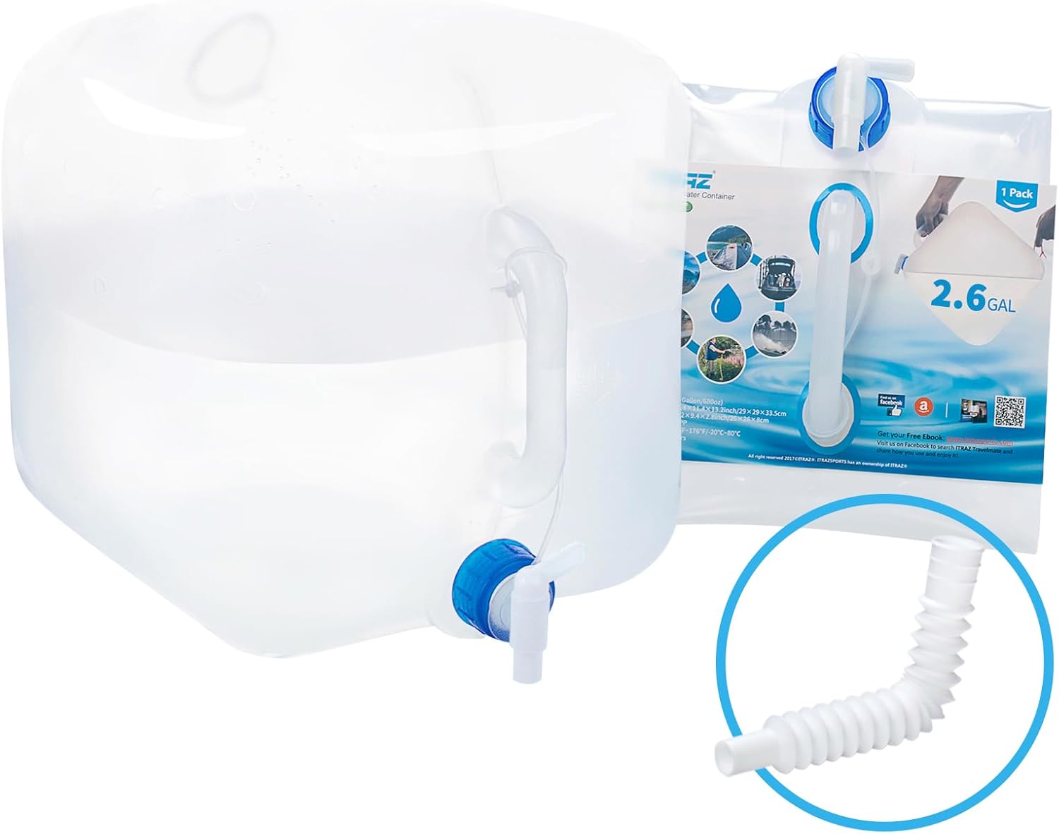 Collapsible Water Container Jug, 2.6 Gallon No BPA Water Storage Carrier with Spigot, for Camping Hiking Backpacking RV Outdoors and Emergency, Foldable Portable Survival Kits for Hurricane