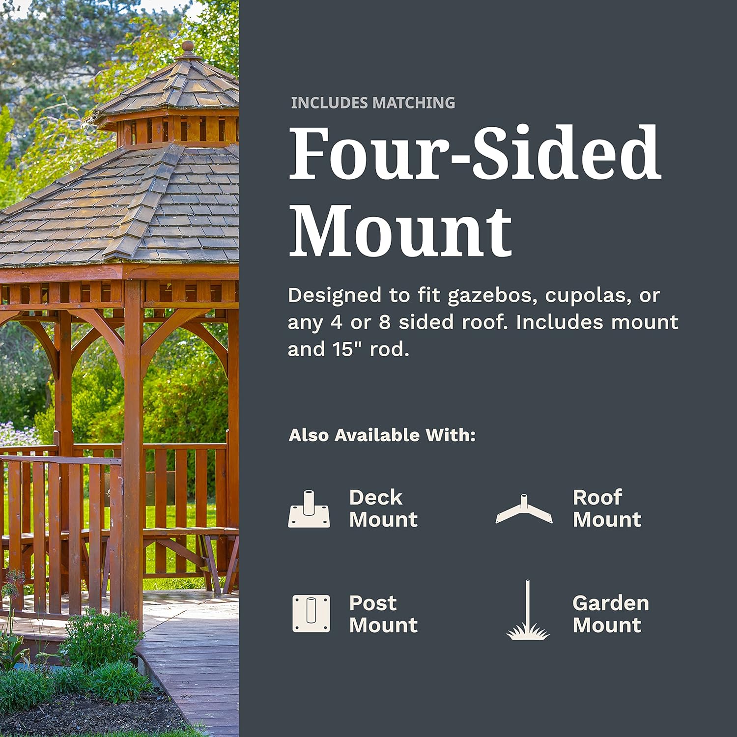 • Easy Installation – Installs in less than five minutes! Topper designs are interchangeable to easily customize for every season or occasion. Other mounting types can also be swapped, with options for a roof, garden stake, deck, or wood post.