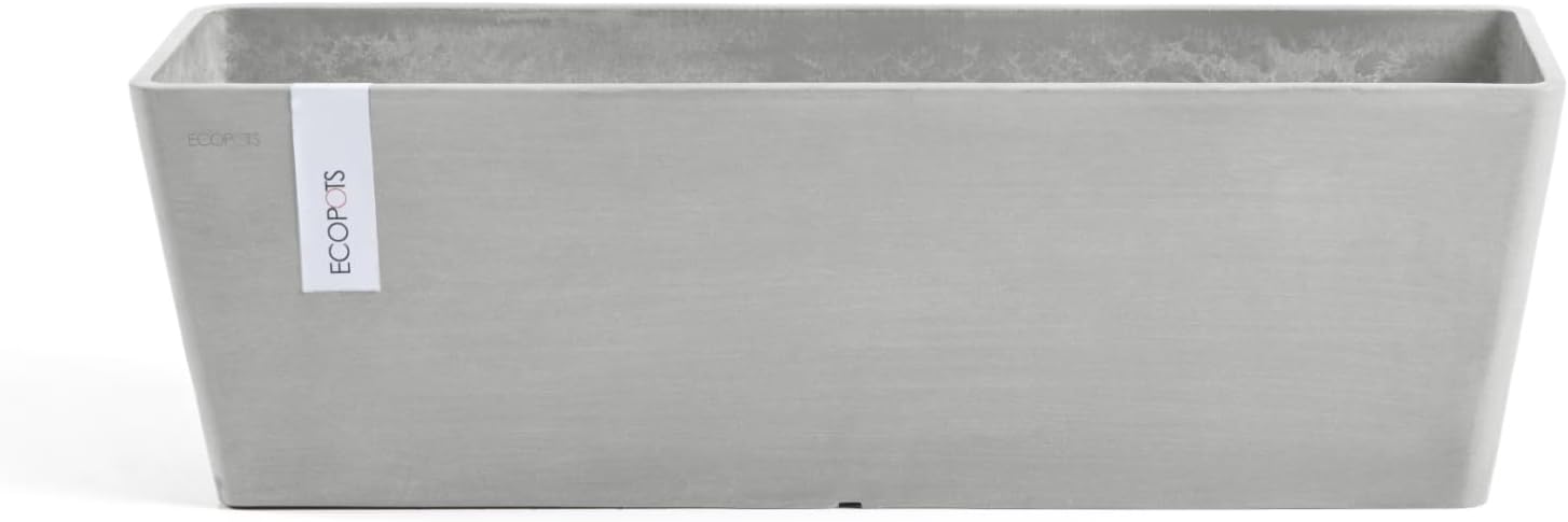 Ecopots Modern Recycled Bruges Plastic Indoor/Outdoor Rectangular Flower Pot Planter, White Grey, 21.5"
