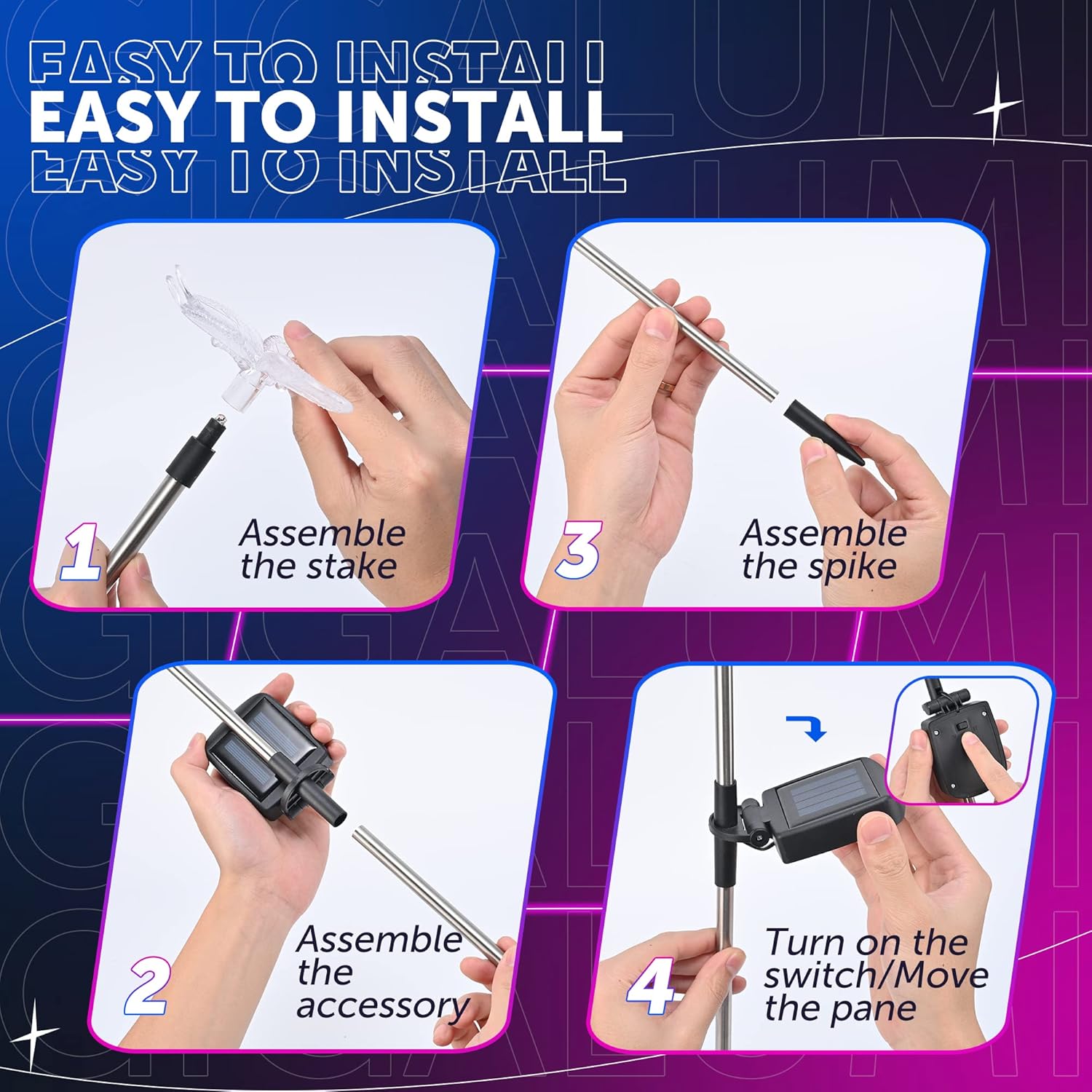 • 【Easy to Install】Color-changing stake lights install easily: remove the protective film, unfold the solar panel, and stake in sunny garden areas. No tools required.