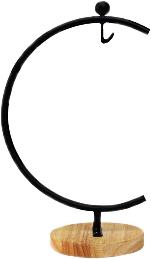 Archi G-Shaped Ornament Display Stand Iron Pothook Stand for Hanging Glass Terrarium/Picture with Wood Base (G Shape-Black)
