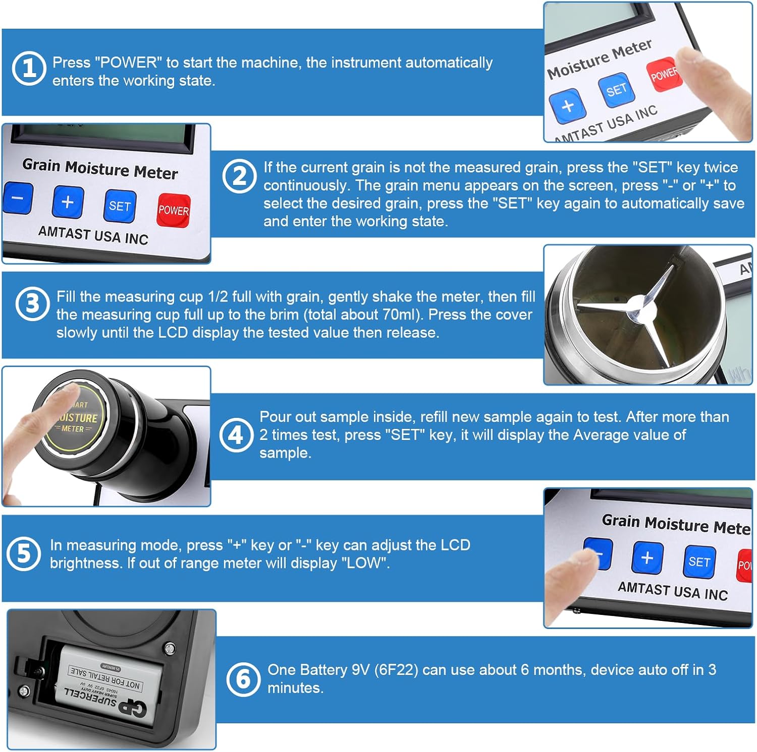 • π‹πŽπ– ππŽπ–π„π‘ π‚πŽππ’π”πŒππ“πˆπŽπ – Our seed moisture tester is engineered for long-lasting use, operating on a 9V battery that lasts up to one year. It features an automatic shutdown function to conserve battery life, making it an economical choice for continuous use. Whether testing flaxseed, almonds, or cashews, this tester ensures that users can efficiently manage their resources while obtaining precise moisture readings with minimal power consumption.