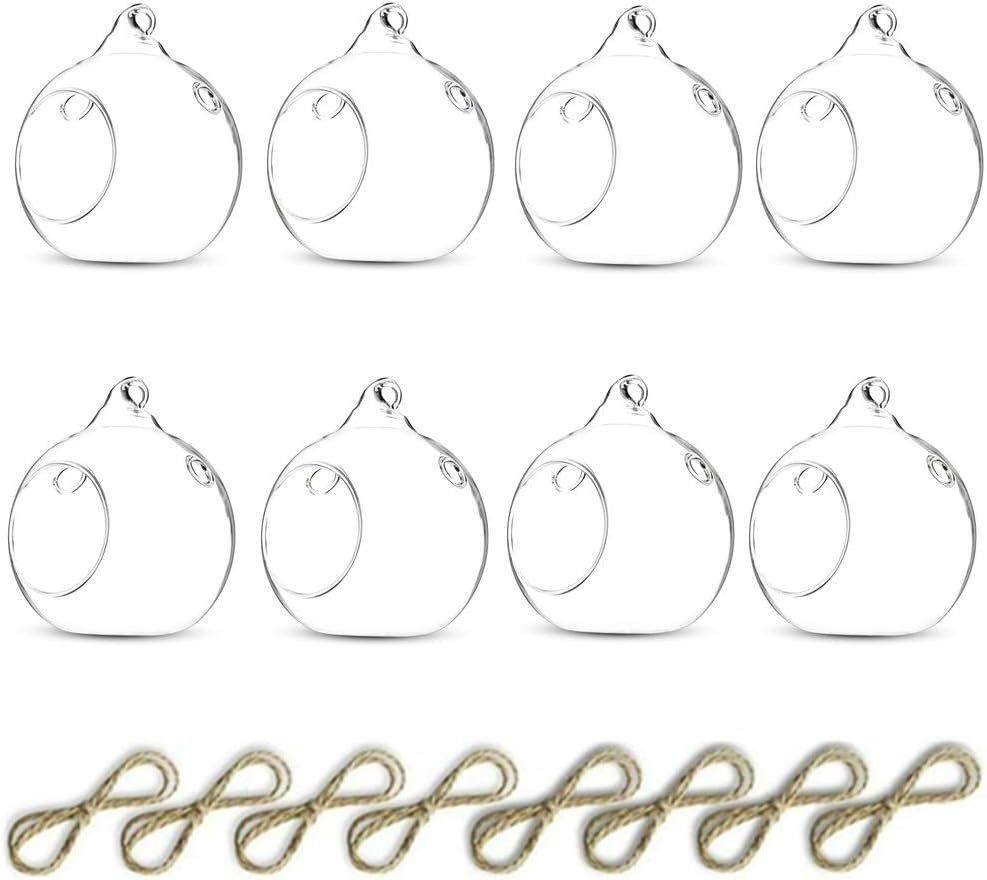 Nuptio 8 Pcs 3.15"/ 8cm Hanging Glass Tealight Holder Globe Plant Terrariums Glass Orbs Air Plants Tea Light Candle Holders Home Decor Indoor Outdoor Garden (with 2 Holes, 6 Pcs + 2 Pcs)