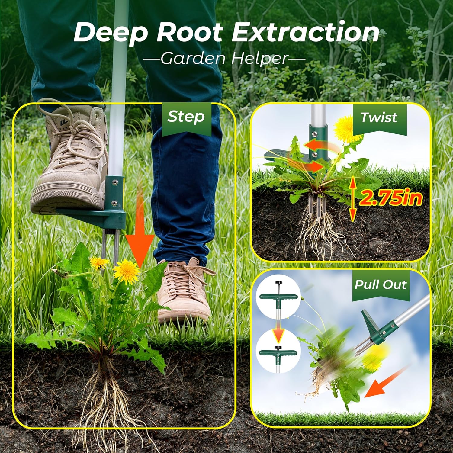 • Durable And High Strength Materials: This weed removing tool is made from durable stainless high strength steel. This is a durable stainless steel garden weed puller, so you don't have to buy another weeder.