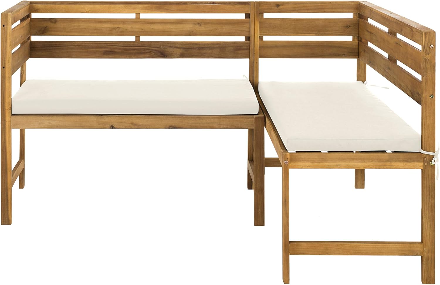 SAFAVIEH PAT6754A Collection Wilton Teak and Navy Balcony Corner Lounge Outdoor Set