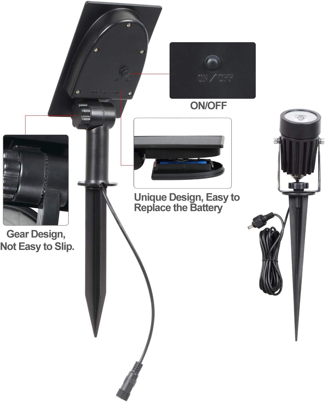 • 【Wide Application】 -- Waterproof rating IP65, don't worry about rain, snow and dust. The solar spotlight perfect for garden, patio, driveway, stairs, pool area, etc..