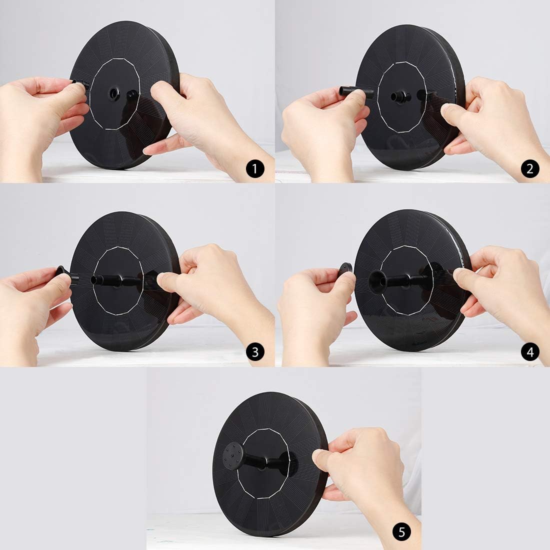 • MULTIPLE WATER PATTERNS - Multiple fountain heads for different water patterns; Easy assembly and exchanging of heads; Please kindly ensure sufficient water supply in smaller water features, especially on sunny days