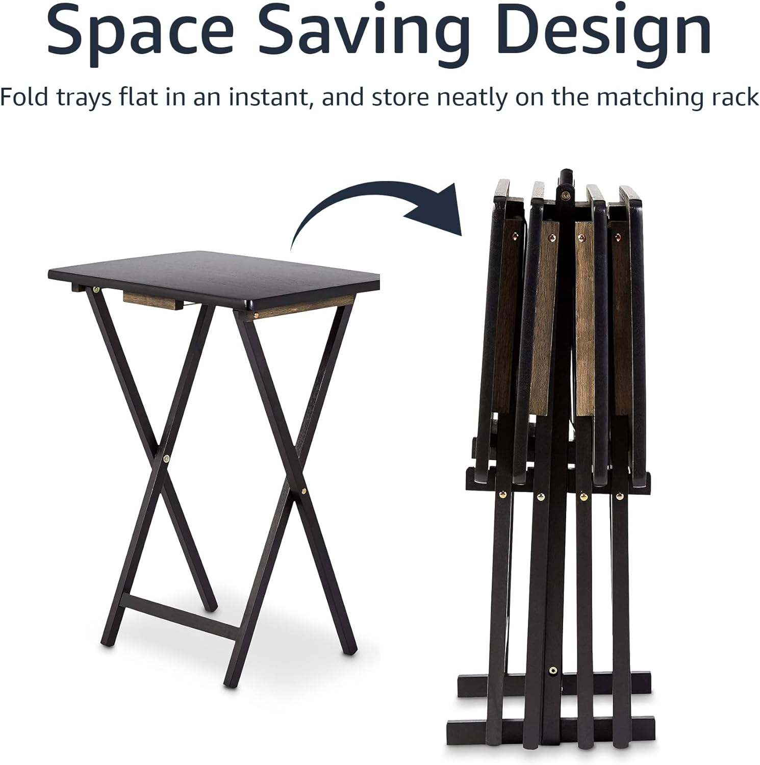 Amazon Basics Portable TV Dinner 4-Pack Rectangular Folding Tray Table with Storage Rack, Black, 15" x 19" x 26"