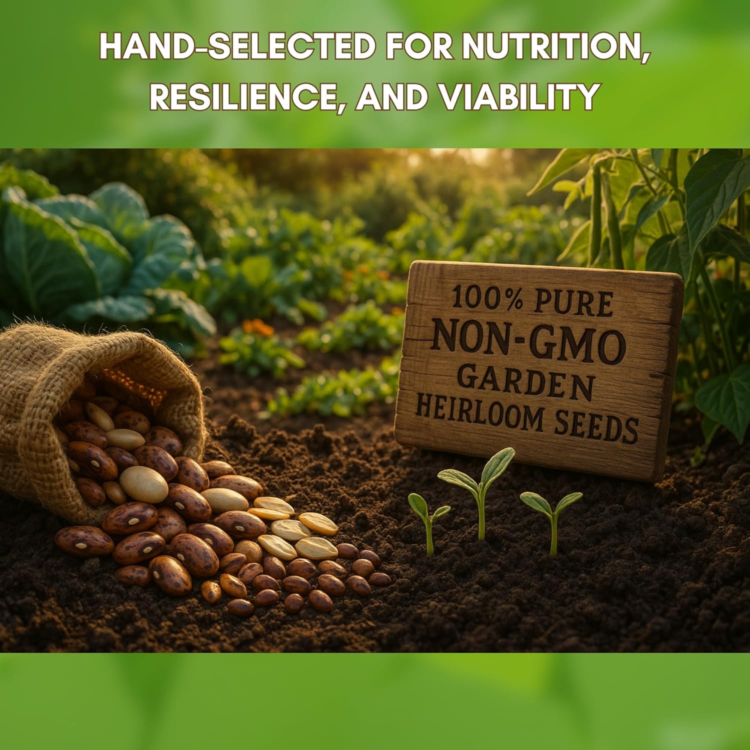 • Nutritious Crops for Every Season: Includes drought-tolerant beans, cold-hardy greens, and other nutrient-rich plants to keep your meals wholesome and balanced