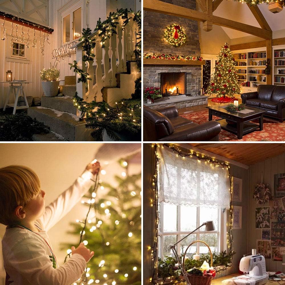 • Flexible 8 modes: The string lights have 8 lighting modes for different time and occasion options. Easily switch with a simple button. Ideal for Christmas trees, parties and more.