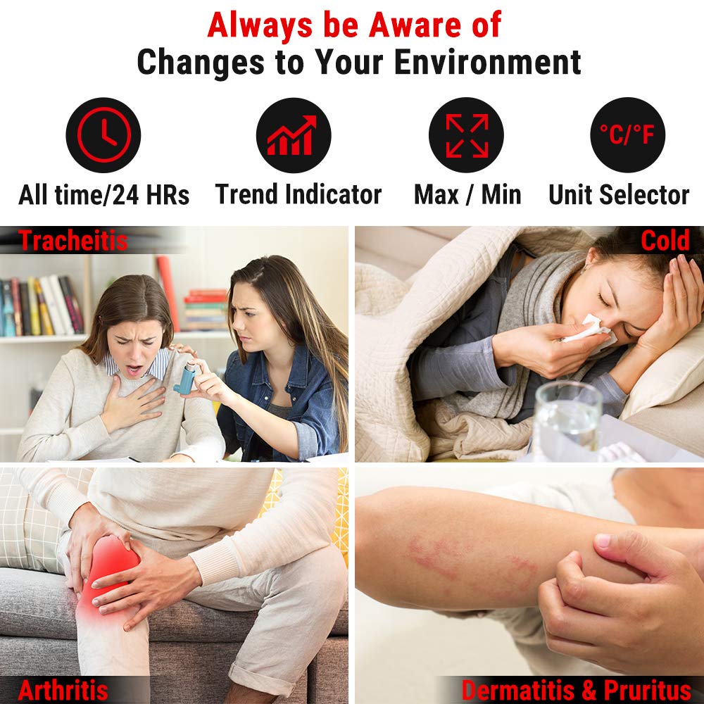 • 【Precision You Can Trust】With precise temperature and humidity readings within +/-2°F and +/-2 to 3%RH, this thermometer indoor outdoor optimizes indoor comfort, improves air quality, and cares for plants more effectively