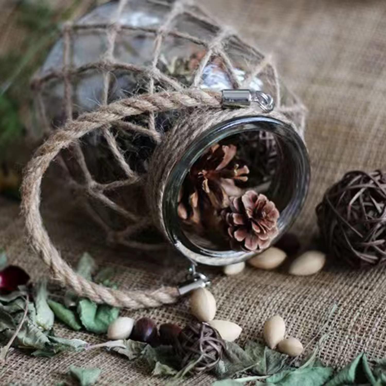 Rustic Hanging Mason Nautical Jar Creative Rope Net Dry Flower Glass Vase with Handle 6.5 Inch