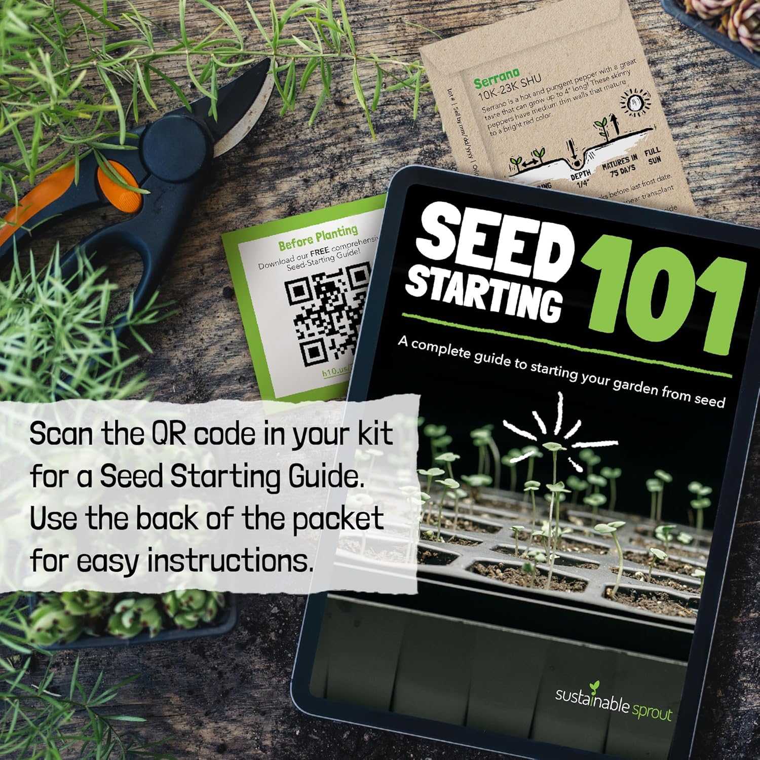 • PREMIUM HOT PEPPER SEEDS VARIETY PACK WITH BONUS MAGNET: Elevate your culinary experience with Sustainable Sprout's ultimate hot pepper seeds variety pack! Cultivate your organic hot pepper garden with the most popular varieties, including Cayenne, Anaheim, Jalapeno, Hungarian Wax Pepper, Habanero, Serrano, and Poblano. Receive a BONUS magnet guide for hot pepper scoville scale! The perfect addition to your seed vault kit heirloom seeds or survival seeds heirloom non-GMO 25 year.