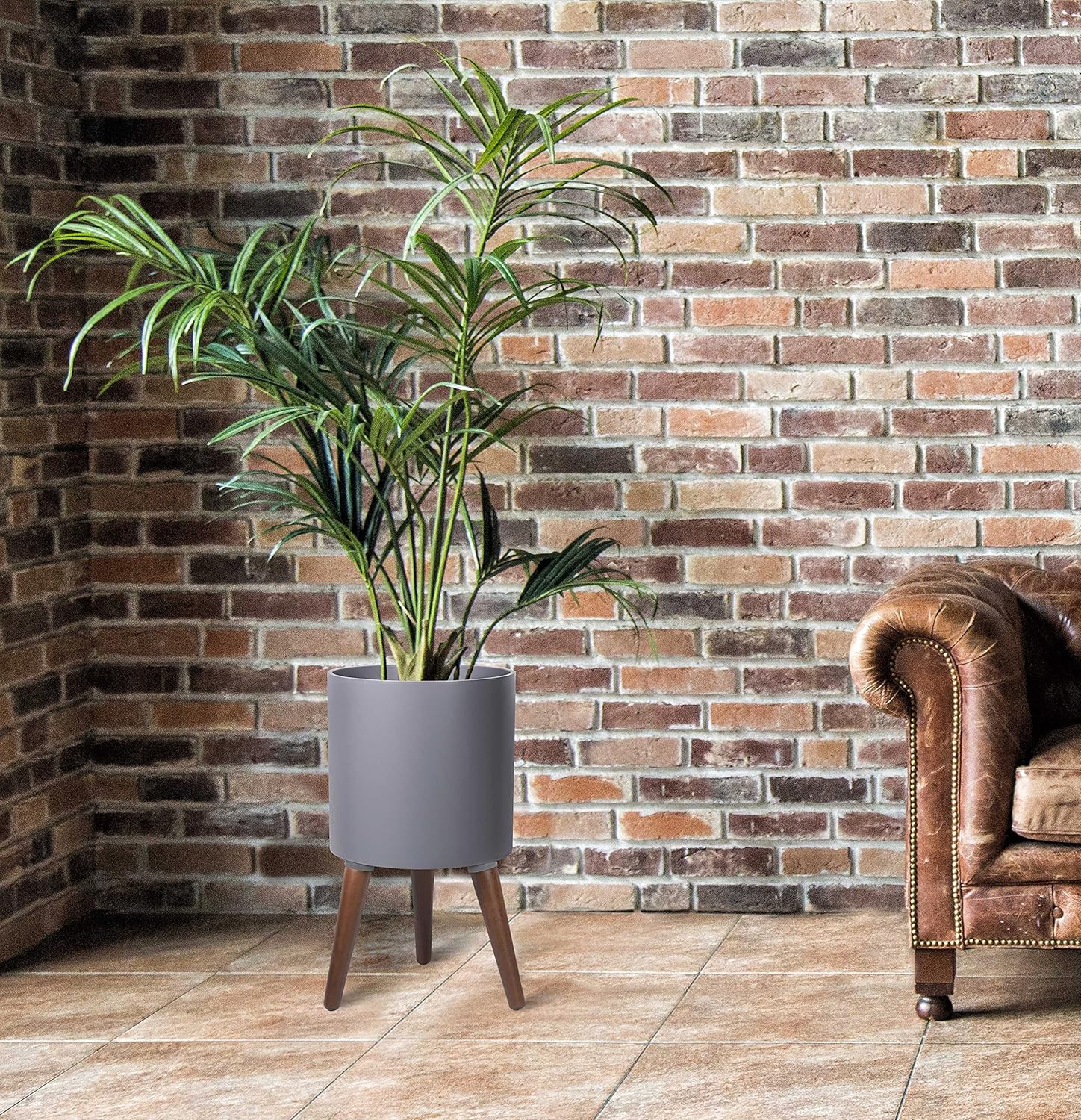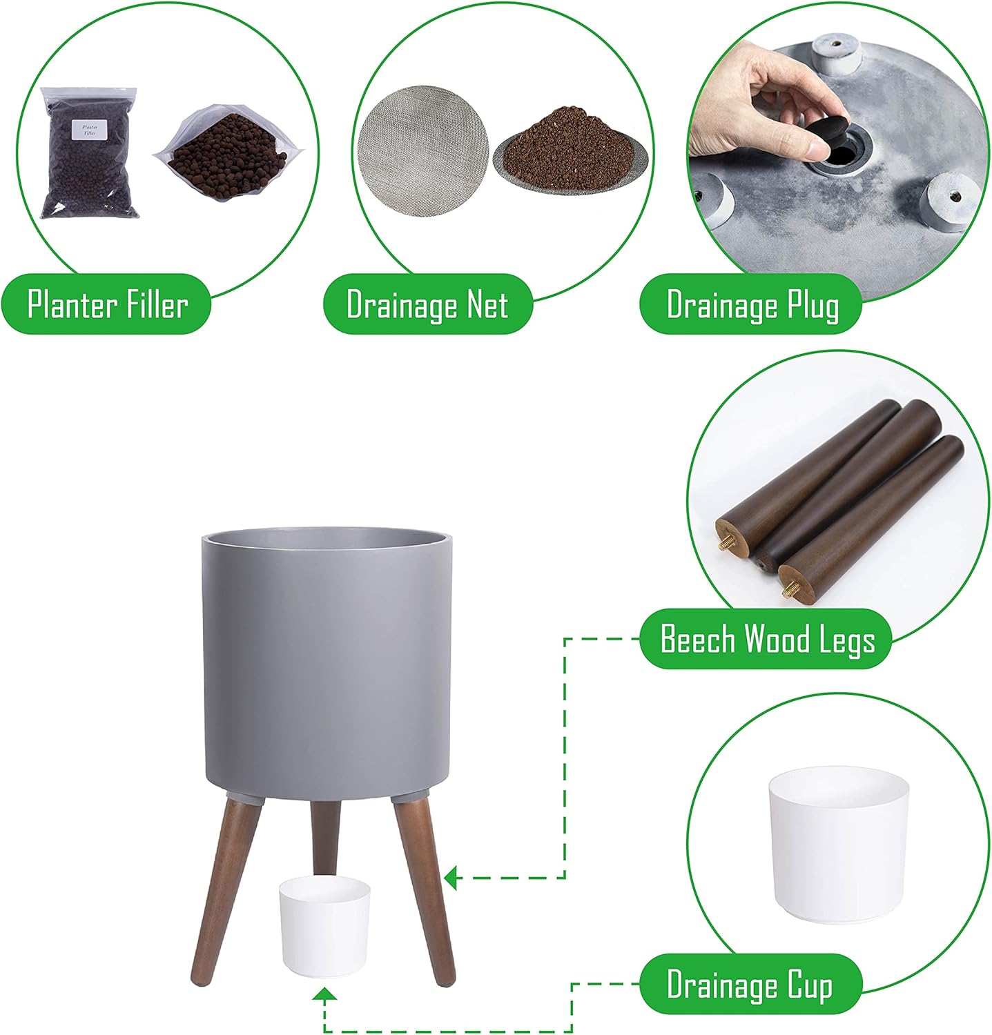 D'vine Dev 10 Inch Planter Pot with Stand, Mid-Century Tall Plant Pot with Legs for Indoor Plants, Medium, Grey, 88-O-B-3
