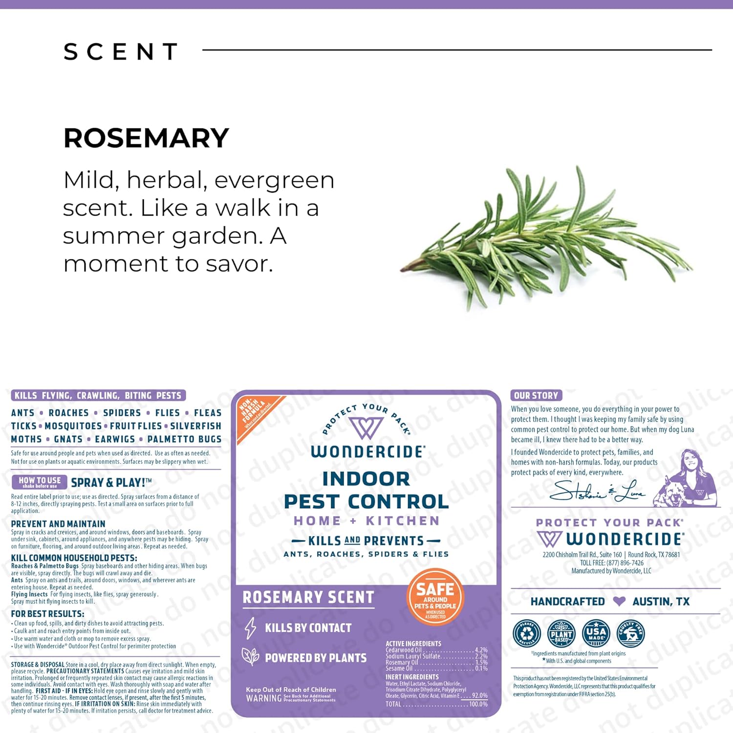 Wondercide - Indoor Pest Control Spray for Home and Kitchen - Ant, Roach, Spider, Fly, Flea, Bug Killer and Insect Repellent - with Natural Essential Oils - Pet and Family Safe — Rosemary 128 oz