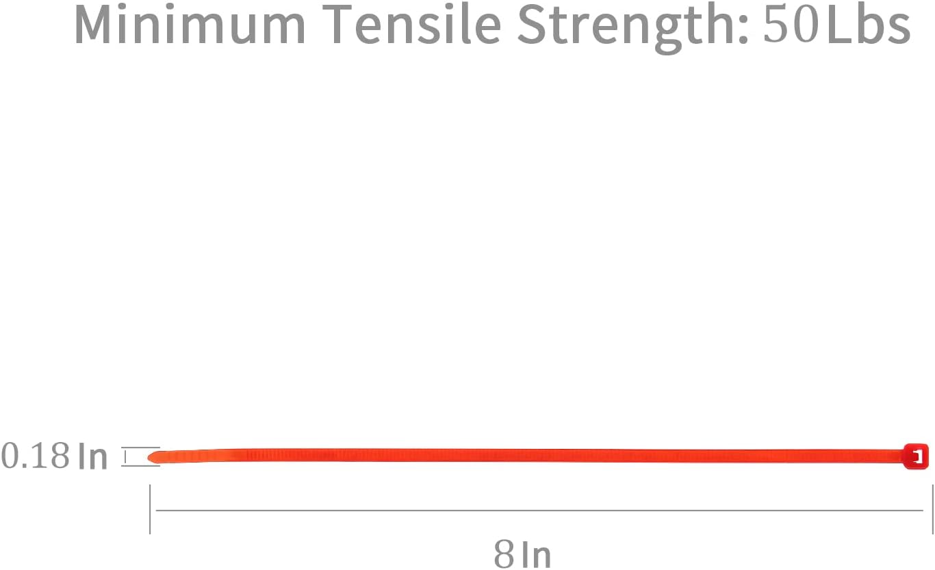XINGO 100PCS Cable Zip Ties Heavy Duty, Premium Nylon Plastic Wire Ties with 50 Pounds Tensile Strength, Self-Locking Black Nylon Zip Ties for Indoor and Outdoor (8 inch, Red)