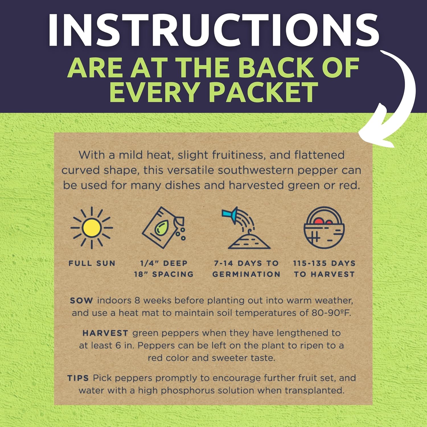 • 8 INDIVIDUAL SEED PACKETS: Joe E. Parker Anaheim Pepper, Cayenne Spicy Pepper, Orange Habanero Pepper, Hungarian Hot Wax Spicy Pepper, Jalapeño Spicy Pepper, Red Habanero Pepper, Shishito Pepper, Poblano Spicy Pepper.
