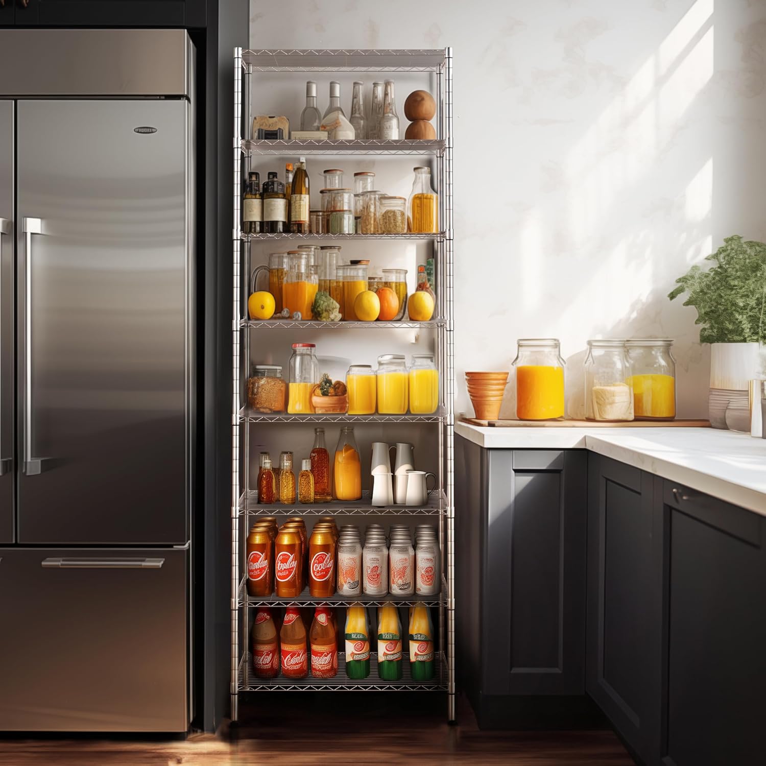 • UPDATE & OPTIMIZE - A lot of customers who bought our 6 tier wire shelving rack want to make the rack higher, so we have developed a new shelf which are 72 inches height and have 8 shelves, you can use all 8 shelves to maximize your storage space or two 4 tier units to make your storage space more flexible. Let's diversified storage and easy access in kitchen, office, garage and more.