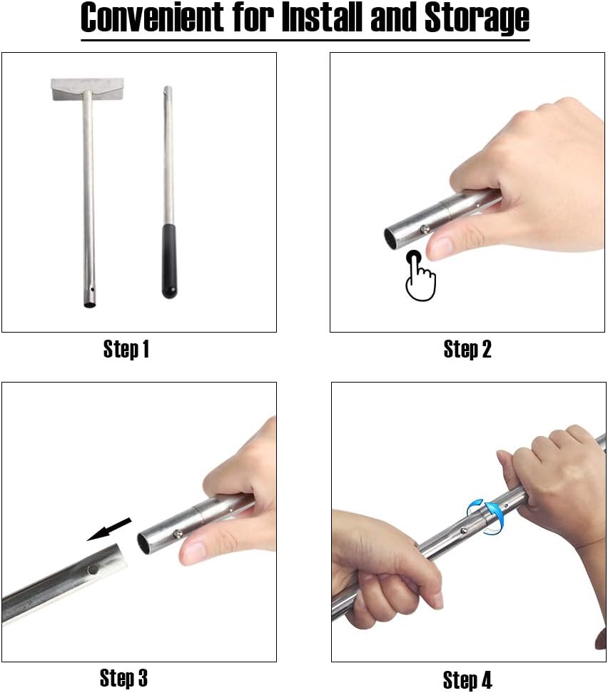• EASY TO INSTALL & STORAGE - The ash rake is composed of two parts, just need to press the button which is in the middle of the handle to connect with another part is finished installation, labor-saving and simple operation; Two-pieces design saves the storage space and easy to carry when you go out grilling
