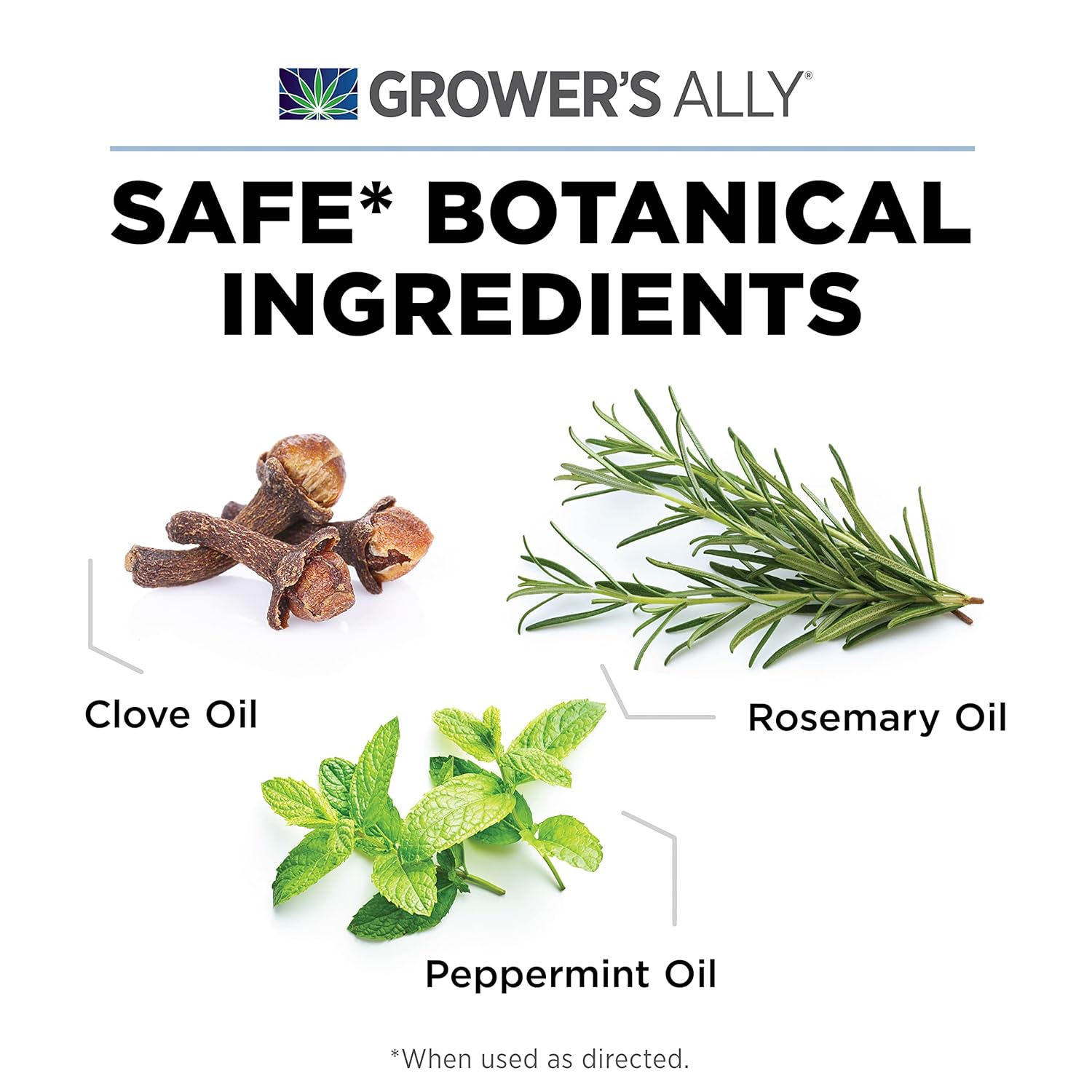• ZERO POLLUTANTS – Formulated with an effective blend of rosemary, clove and peppermint oils, our formula is FIFRA 25(b) exempt and OMRI Listed for use in organic gardening. Grower’s Ally tests clean and contains no residual solvents, no synthetic pesticides and no heavy metals.