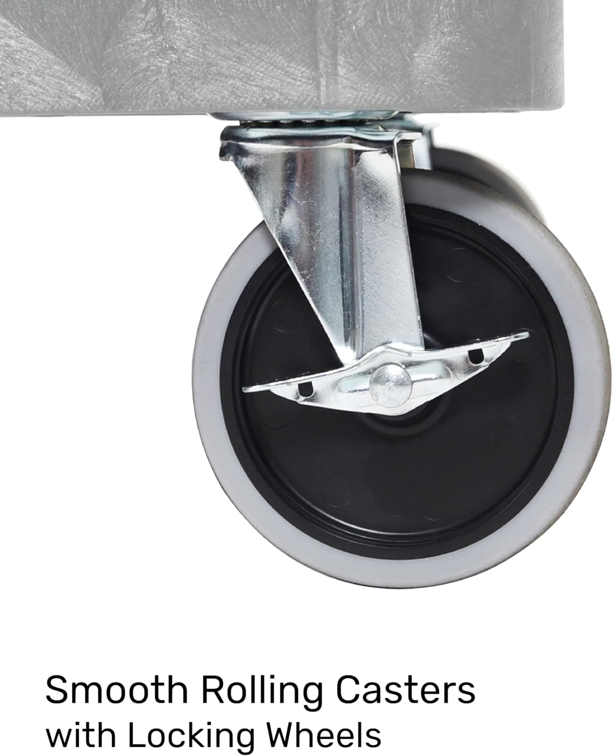 • High-Quality Construction for Lasting Durability: Designed with rounded corners and built from high-density polyethylene (HDPE), this gray utility cart features two spacious shelves with 2.5” deep tubs for secure storage. The 19.5” clearance between shelves accommodates larger items with ease.
