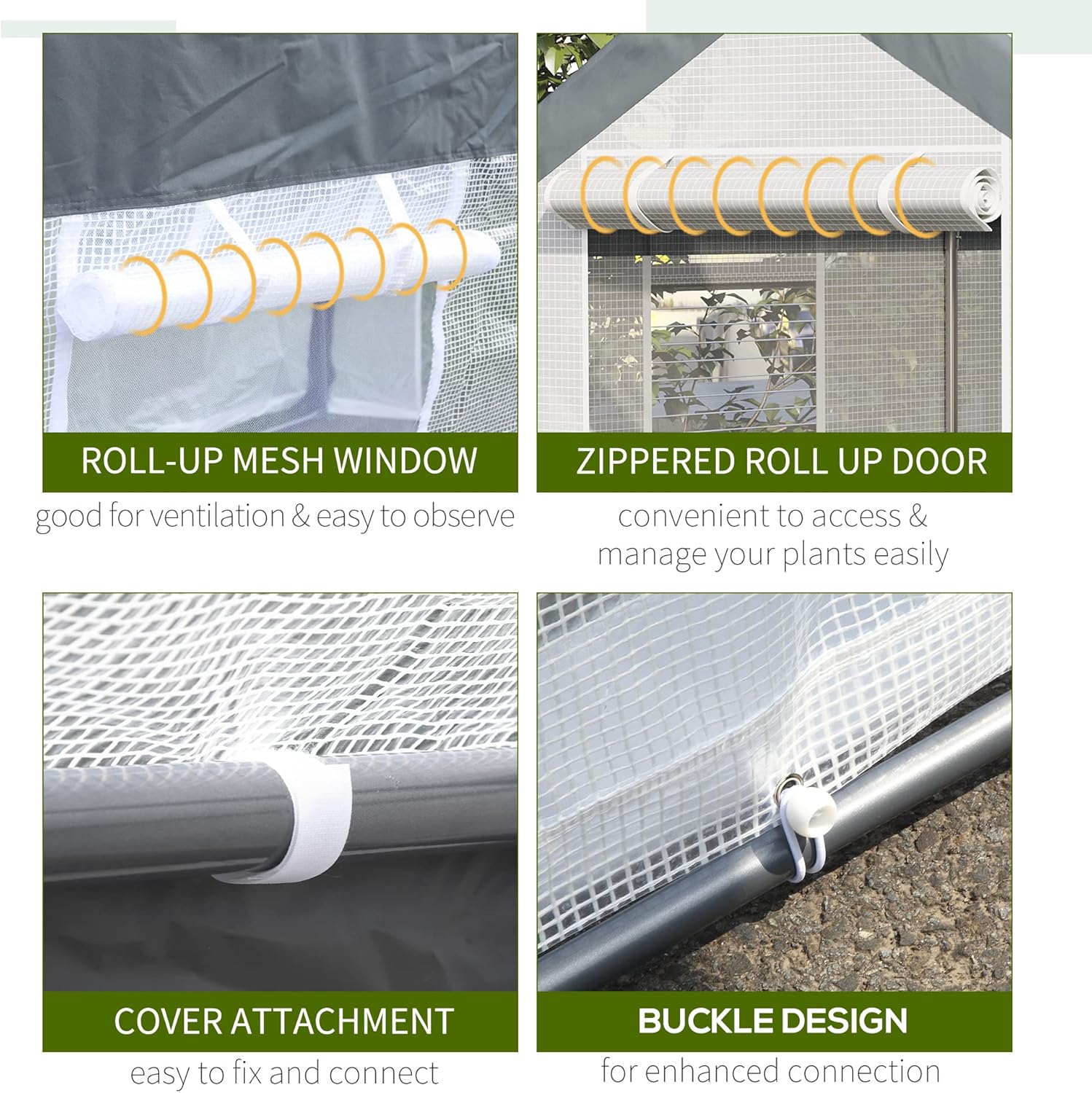 Outsunny 10' x 7' x 7' Greenhouse, Walk-in Outdoor Tunnel Green House with PE Cover, Steel Frame, 2 Roll-Up Zipper Doors & 4 Windows for Flowers, Vegetables, Tropical Plants, White