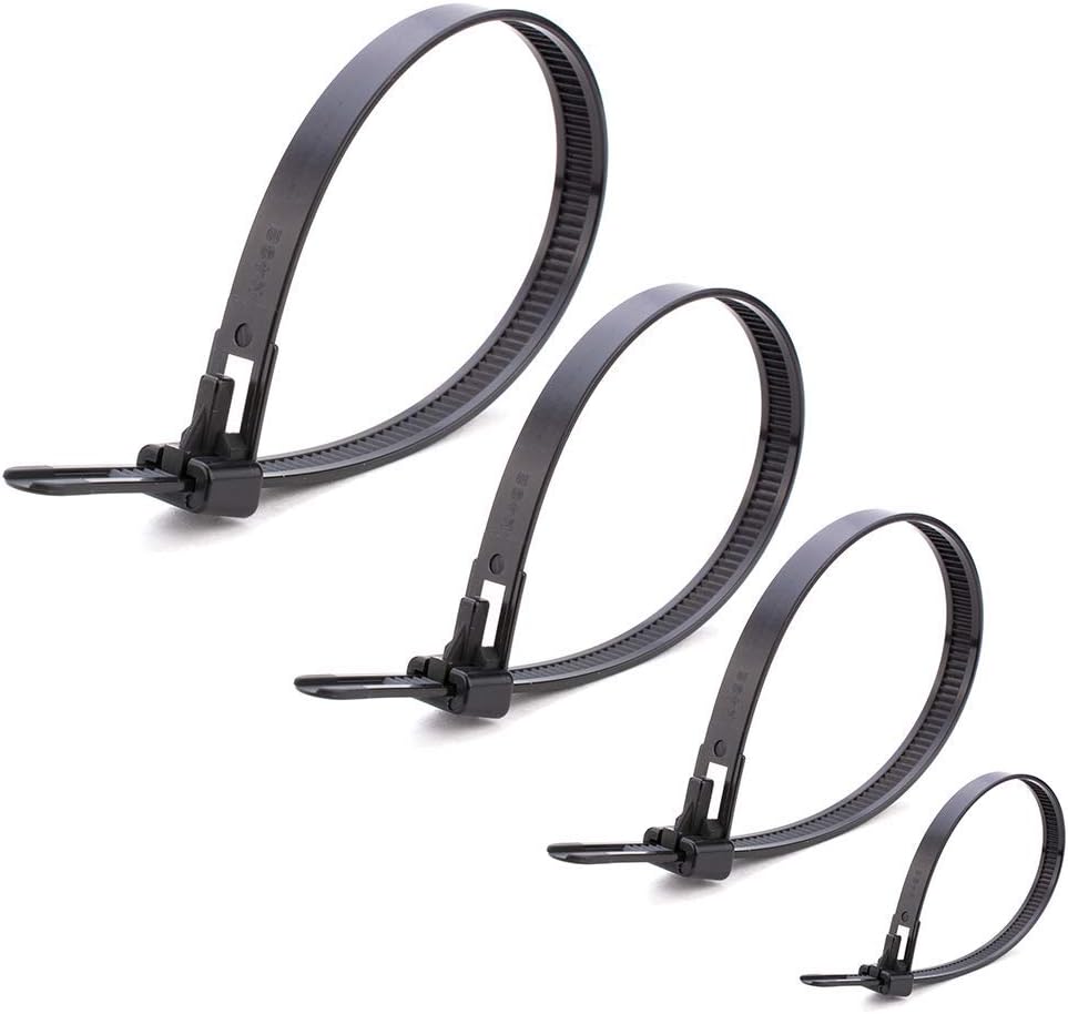 Reusable Zip Ties, 100 Pcs Assorted Fastening Cable Zip Ties 6" 8" 10" 12" Four Length Heavy Duty Nylon Self Locking Wire Ties