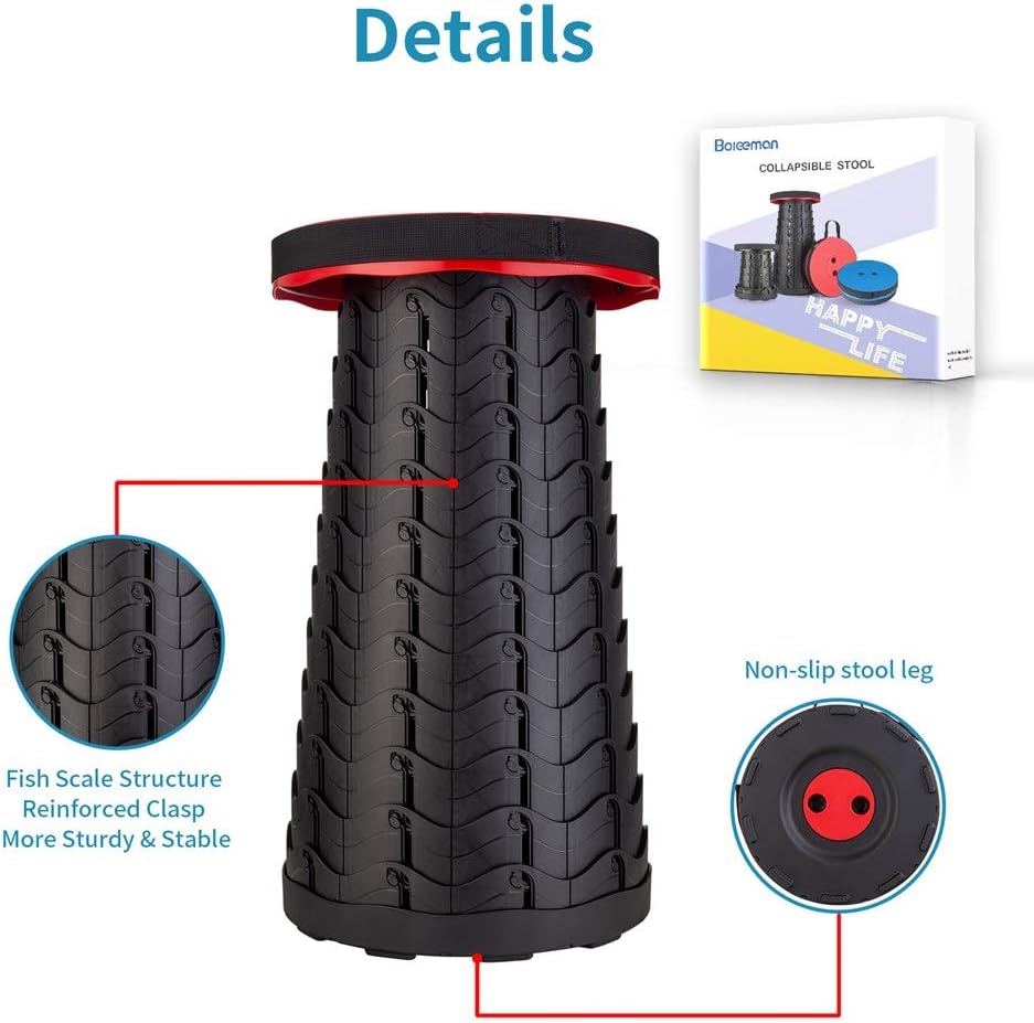 Boreeman Upgraded Folding Stool Lightweight Yet More Sturdy with Load Capacity 400lbs Portable Collapsible Stool for Camping Fishing Hiking BBQ (Red)