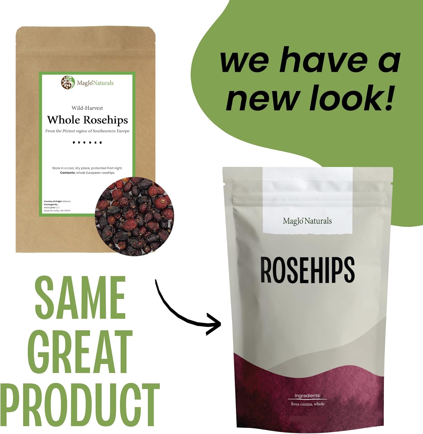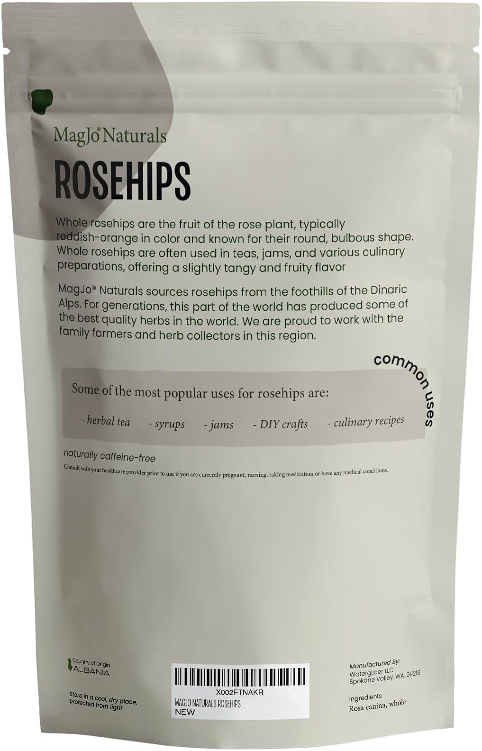 • WHOLE ROSEHIPS: 1 lb of Rosa canina packaged in a high quality resealable kraft bag