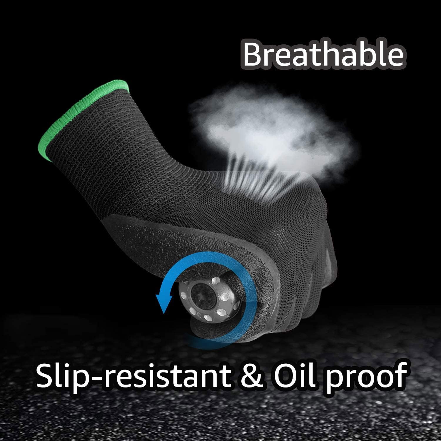 • TEXTURED COATING: Latex/rubber palm and finger crinkle coating, provides Anti-slip, Cut and Puncture resistant and repels light liquids.